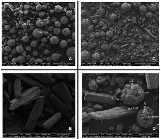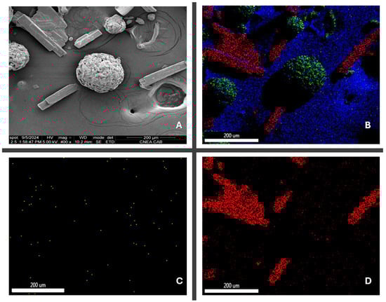 Additional information related to possible incompatibilities is obtained by performing SEM on the API and API/excipient powder mixture using an FEI INSPECT s50 thermionic microscope operated between 0.1 kV and 30 kV. Images were obtained with an ETD (Everhart–Thornley detector) secondary-electron detector and a vCD backscattered electron detector. EDS analyses were obtained using an Octane Pro detector manufactured by EDAX (Pleasanton, CA, USA). The voltage used was 20 kV for EDS analysis. SE and BSE low-voltage imaging, i.e., near 5 kV, was used to avoid the use of Au or C sputtering. An aliquot of raw sample powder was sprinkled on the carbon tape for sample treatment.