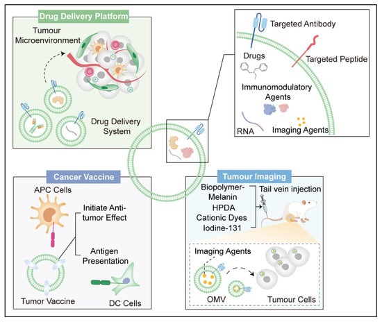 Engineered outer membrane vesicles (OMVs) hold great potential as cancer vaccines because of their unique ability to stimulate the immune system and induce antitumour immune responses [61,62] (Figure 2).