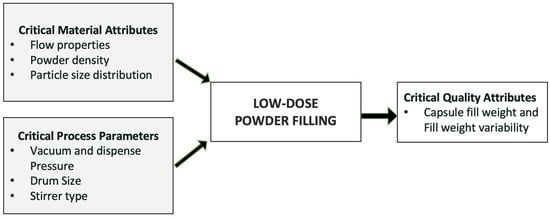 Critical process parameters and critical material attributes during low-dose powder filling.