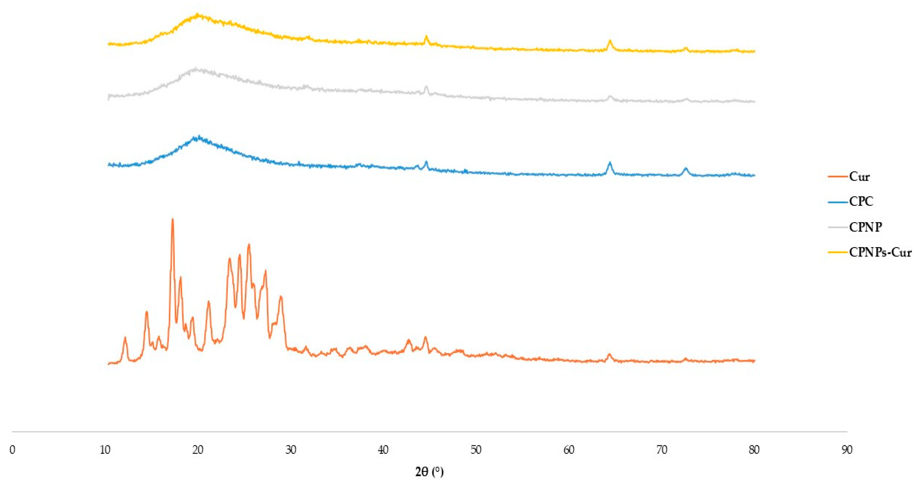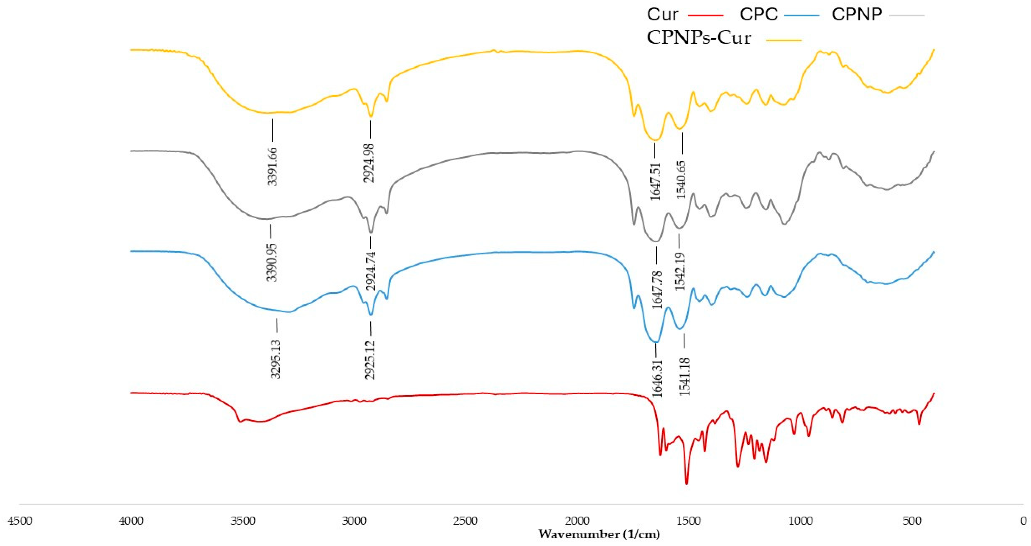 2.5. Preparation of Cur-Coconut Protein Nanoparticle Complexes
