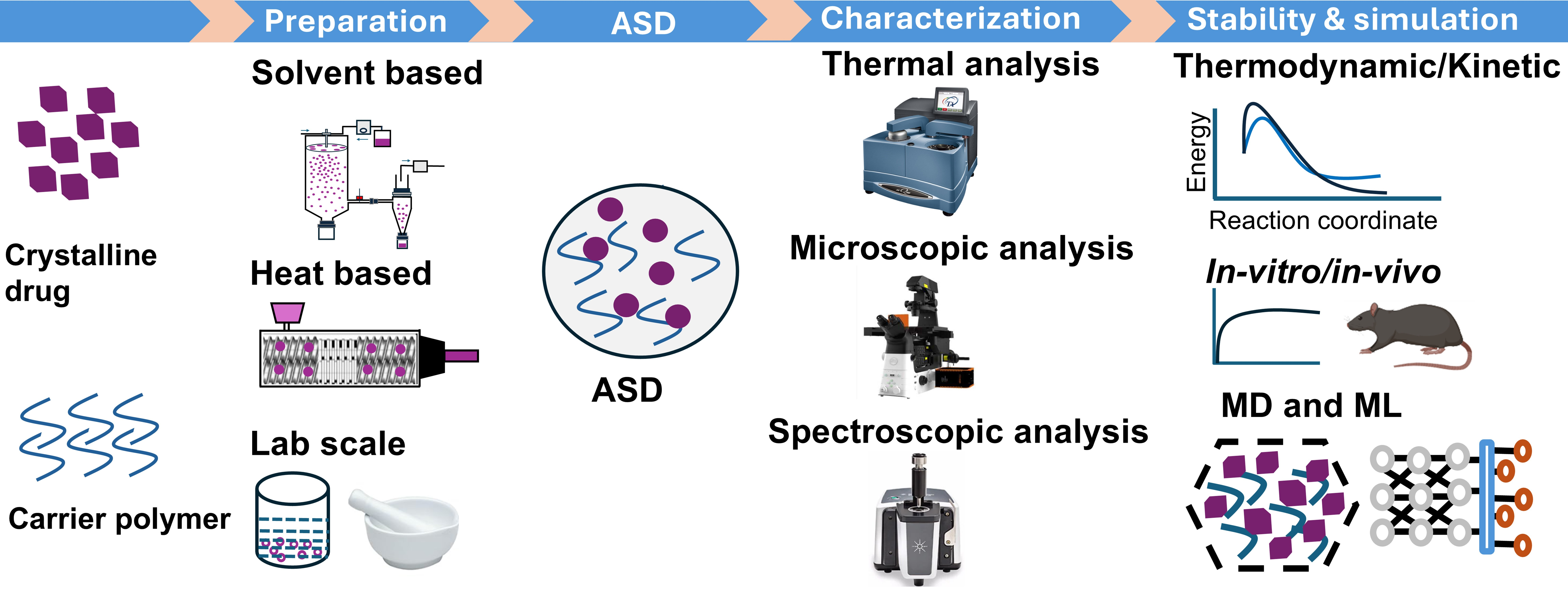 Bhatta, H.P.; Han, H.-K.; Maharjan, R.; Jeong, S.H. Recent Techniques to Improve Amorphous Dispersion Performance with Quality Design, Physicochemical Monitoring, Molecular Simulation, and Machine Learning. Pharmaceutics 2025, 17, 1249. https://doi.org/10.3390/pharmaceutics17101249