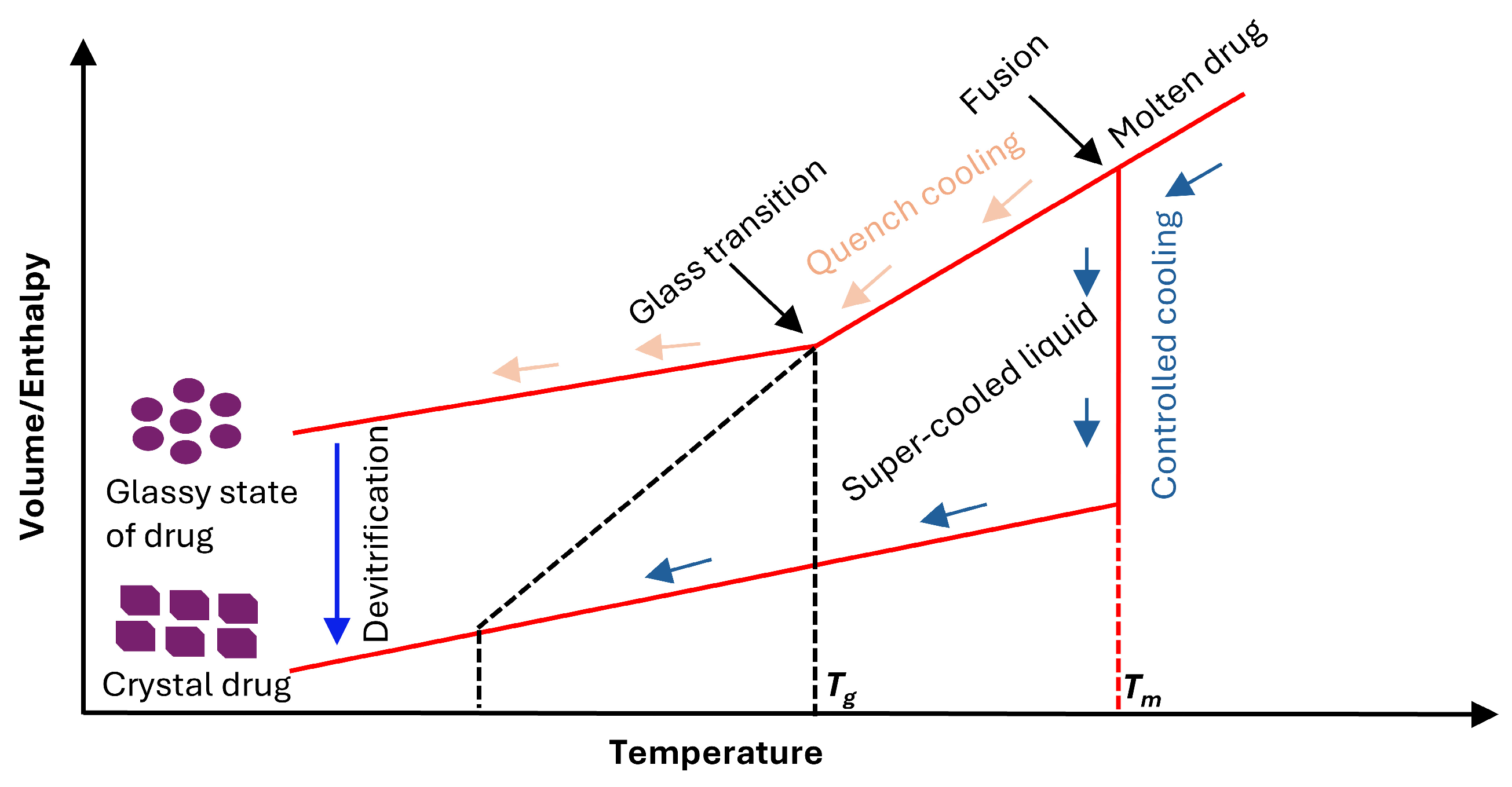 - Kawakami, K. Crystallization tendency of pharmaceutical glasses: Relevance to compound properties, impact of formulation process, and implications for design of amorphous solid dispersions. Pharmaceutics 2019, 11, 202. [Google Scholar] [CrossRef] [PubMed]