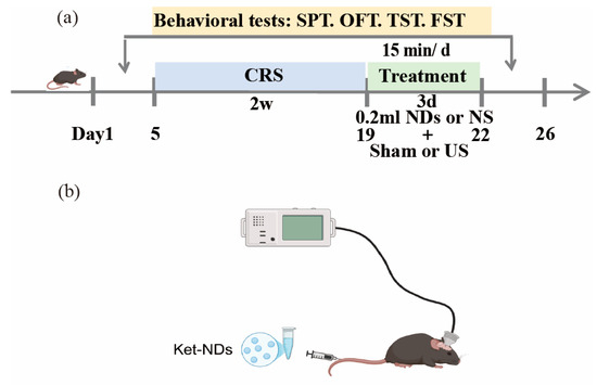 We investigated whether ultrasound-triggered release of Ket-NDs at LHb target following intravenous administration could produce antidepressant effects. The CRS model, a well-established paradigm for inducing depressive-like behaviors in rodents [42], was employed to validate the therapeutic efficacy of this approach. Our findings demonstrate that this targeted treatment modality effectively improves depression-like phenotypes in the CRS model.