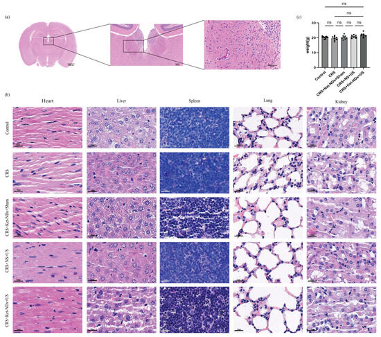 For in vivo studies, normal saline (NS, 0.9% sodium chloride), hematoxylin and eosin (H&E) staining kit were purchased from Servicebio Technology Co., Ltd. (Wuhan, China). Sucrose was purchased from Solarbio Science & Technology Co., Ltd. (Beijing, China). Isoflurane was purchased from RWD Life Science Co., Ltd. (Shenzhen, China). Pentobarbital sodium was purchased from Shanghai Macklin Biochemical Technology Co., Ltd. (Shanghai, China).