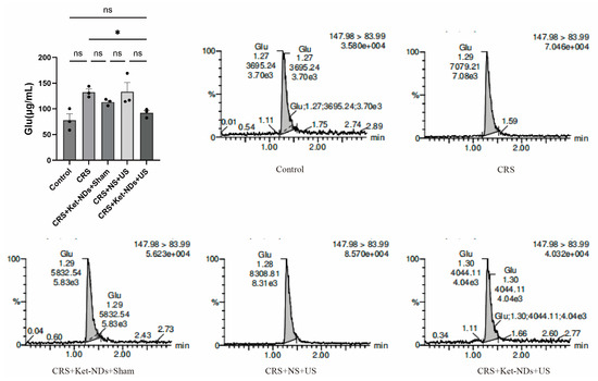 Concurrently, mice in the CRS + Ket-NDs + Sham and CRS + Ket-NDs + US groups received a 0.2 mL tail vein injection of Ket-NDs. Mice in other groups received tail vein injections of 0.2 mL of saline. The ultrasound stimulation parameters were as follows: frequency: 2 MHz, duty cycle: 5%, pulse duration: 500 μs, pulse repetition period: 1 ms, stimulus duration: 300 ms, inter-stimulus interval: 3 s, PNP: 3.08 MPa, treatment regimen: 15 min/day for 3 consecutive days. Sham Control: The transducer was positioned identically without activating the signal generator. All groups received the same gas anesthesia on treatment days. All other conditions remained unchanged.