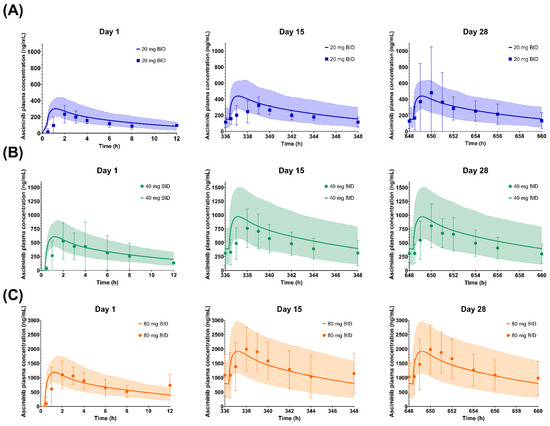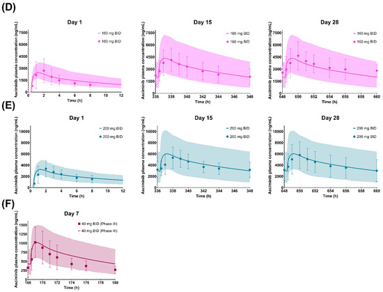 3.1. Performance Verification of the Asciminib Model to Predict the PK in Healthy Subjects and Cancer Patients