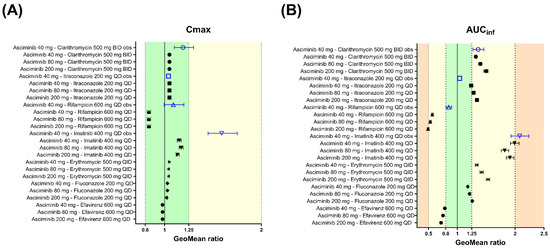 4.1. Extrapolation of the Effects of Strong and Moderate CYP3A Inhibitors on Asciminib (80 and 200 mg Doses)