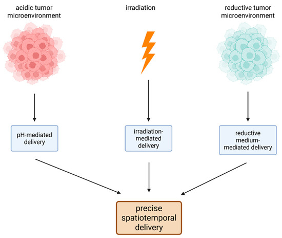 The principles of multistimuli-responsive drug delivery systems are presented in Figure 6.