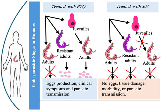 97. El Ridi, R.A.; Tallima, H.A. Novel therapeutic and prevention approaches for schistosomiasis: Review. J. Adv. Res. 2013, 4, 467–478. [Google Scholar] [CrossRef]