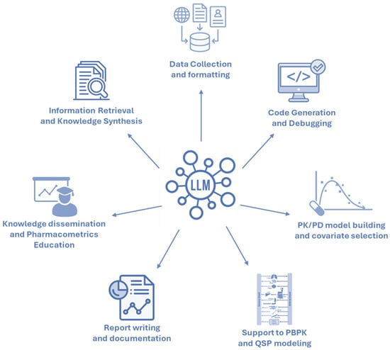 The objective of this section is to outline how LLMs could be strategically applied. To this end, we draw on lessons from the successful adoption of LLMs in adjacent scientific disciplines. This overview is not intended to be exhaustive. Rather, it aims to stimulate critical reflection and inspire pharmacometricians to consider how LLMs might be integrated into more advanced modeling, simulation, and decision-support workflows in both research and applied settings (see Figure 1).
