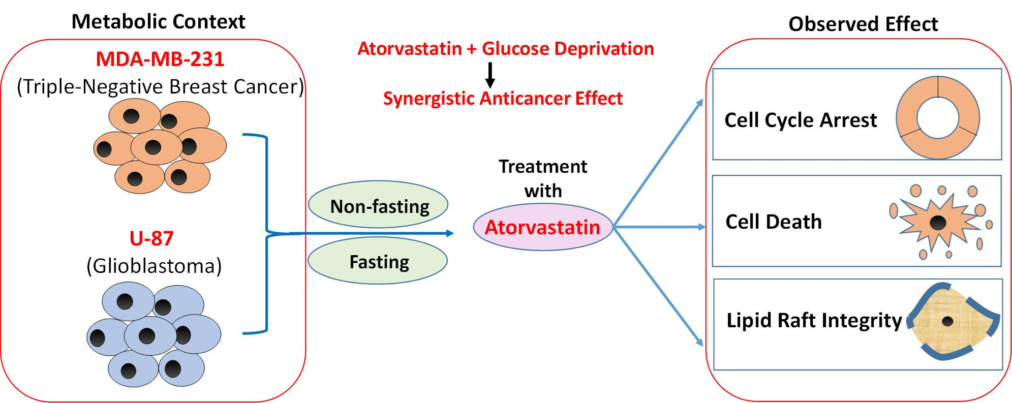 Alshaer, W.; Ijjeh, Y.; Alsarayreh, N.; Alqudah, D.A.; Rifai, A.; Abu-Siniyeh, A.; Alsalem, M. Combined Effects of Atorvastatin and Glucose Deprivation on Metabolic Stress and Lipid-Raft Disruption in Glioblastoma and Breast Cancer Cells. Pharmaceutics 2025, 17, 1275. https://doi.org/10.3390/pharmaceutics17101275