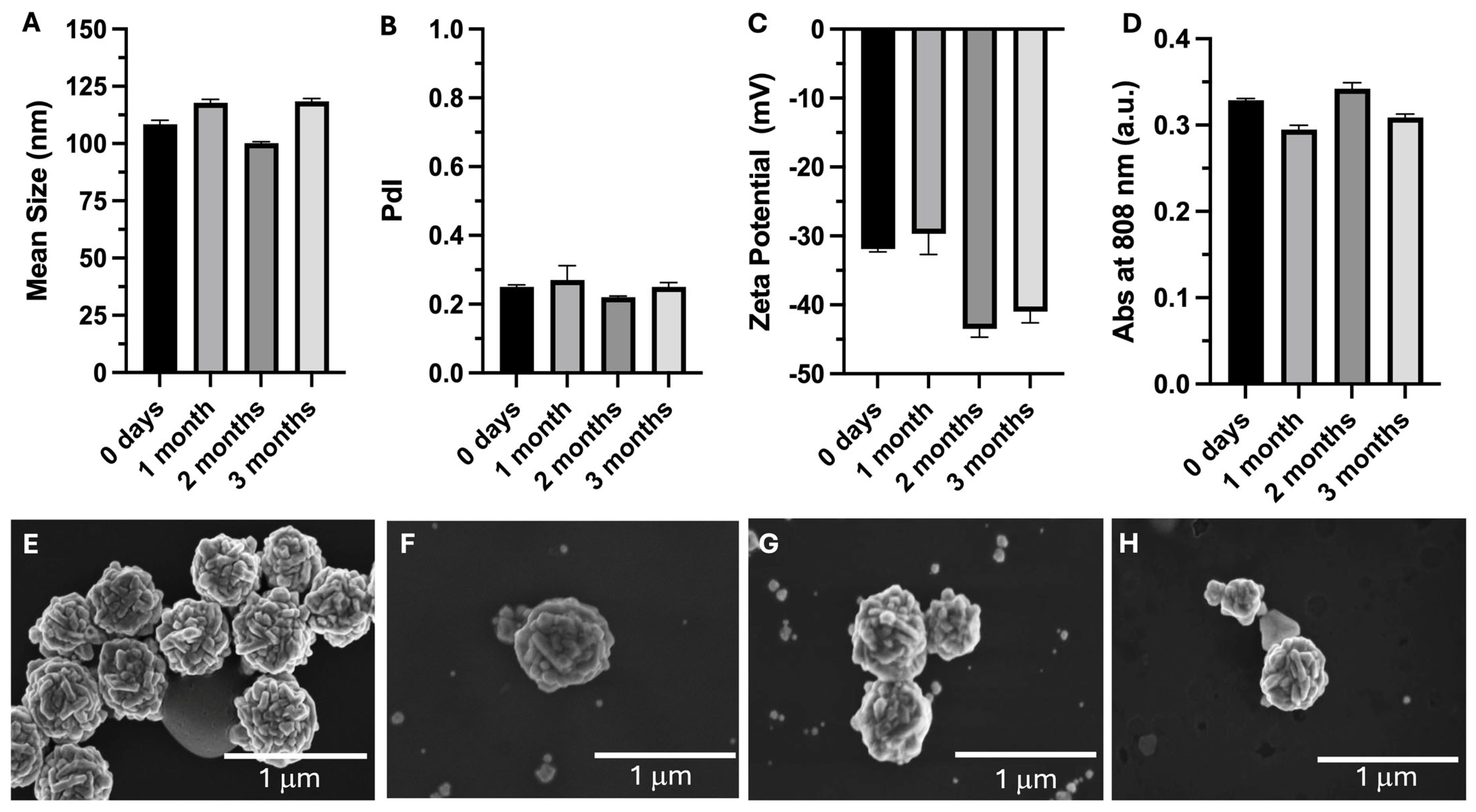 Mean Size (nm) | PdI | Zeta Potential (mV) | Abs808nm (a.u.) | |