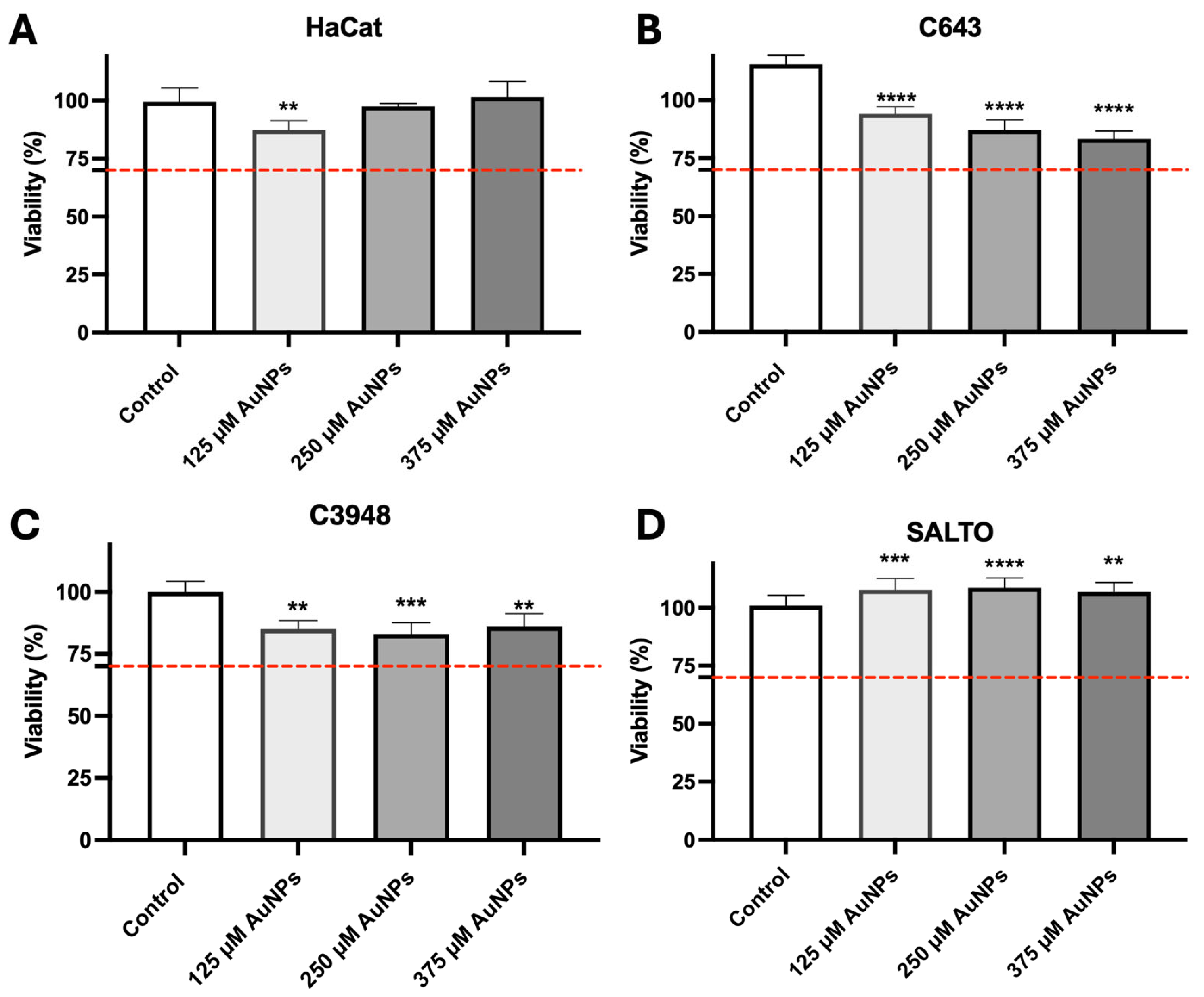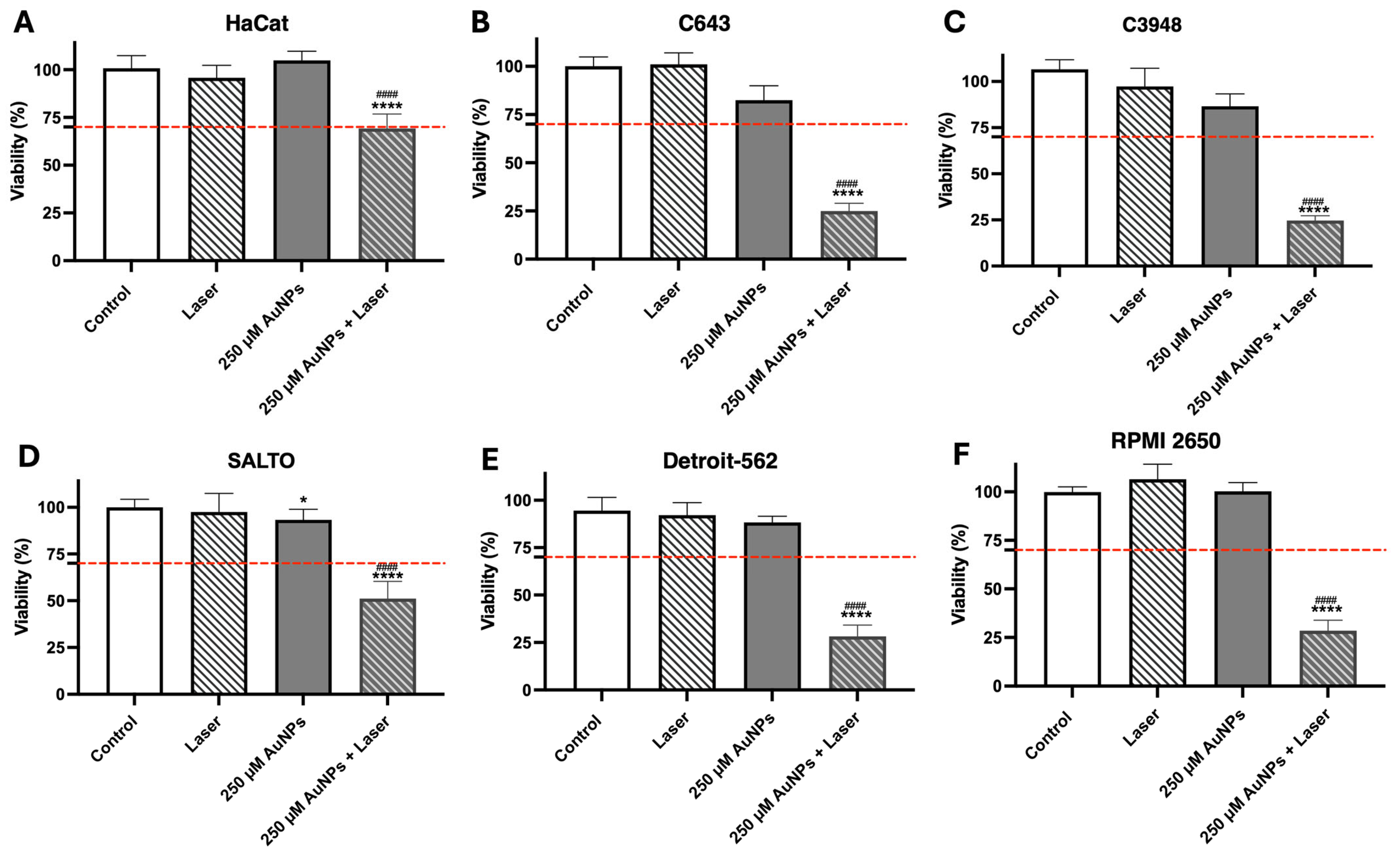APA StyleAmaral, M. N., Neto, Í., Cabral, M., Nunes, D., Fortunato, E., Martins, R., Rodrigues, C., de Almeida, A. P., Catarino, J., Faísca, P., Ferreira, H. A., Coelho, J. M. P., Gaspar, M. M., & Reis, C. P. (2025). Towards a Less Invasive Treatment for Head and Neck Cancer: Initial Evaluation of Gold Nanoparticle-Mediated Photothermal Therapy. Pharmaceutics, 17(10), 1283. https://doi.org/10.3390/pharmaceutics17101283