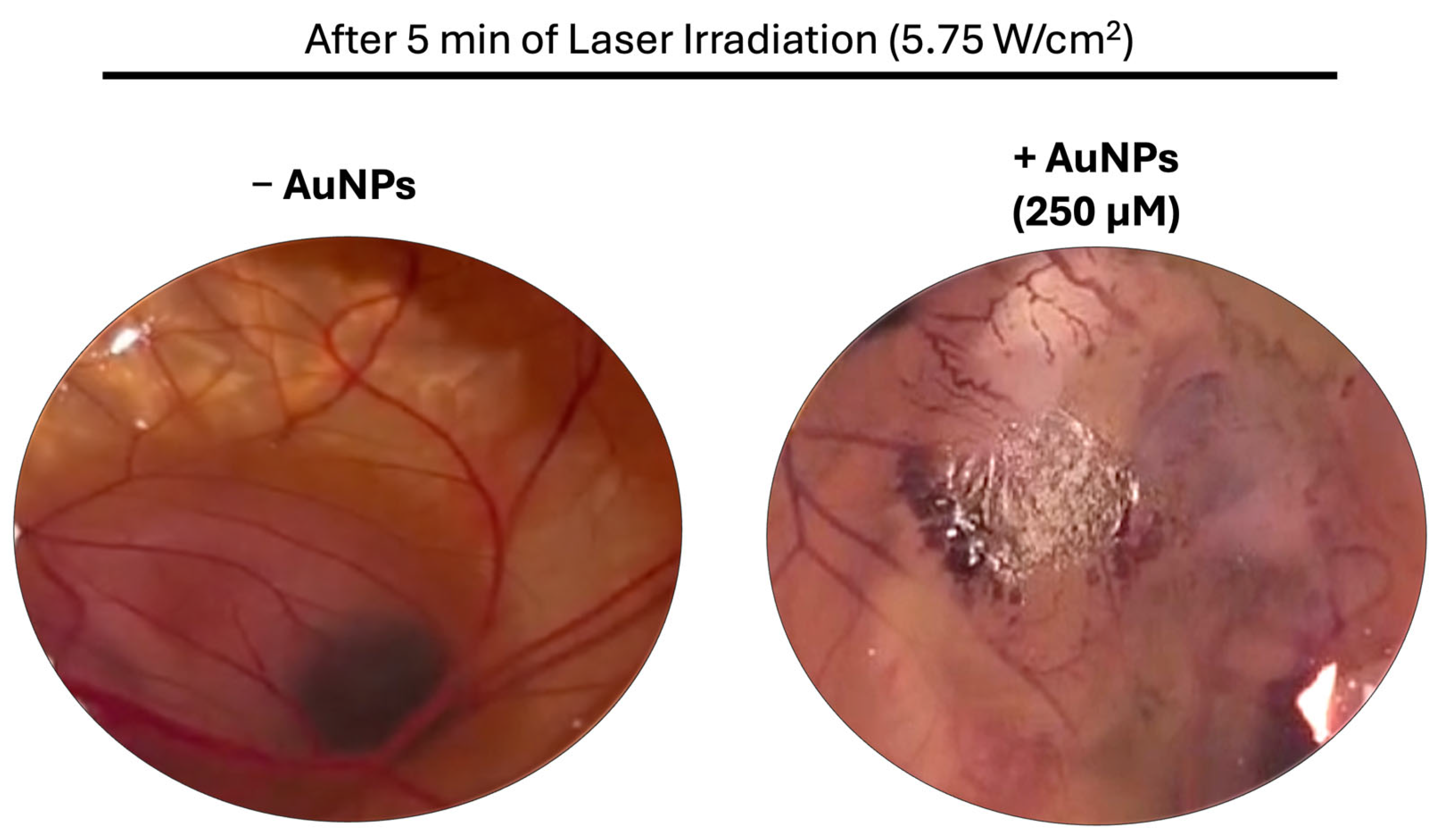 - Domingo-Diez, J.; Foti, A.; Casanova-Carvajal, Ó.; Marrodán, L.; Granado, N.; Satriano, C.; Martínez-Murillo, R.; Serrano-Olmedo, J.-J.; Ramos-Gómez, M. Effect of Photothermal Therapy Using Gold Nanoparticles Conjugated with Hyaluronic Acid in an Intracranial Murine Glioblastoma Model. Int. J. Nanomed. 2025, 20, 9327–9346. [Google Scholar] [CrossRef] [PubMed]