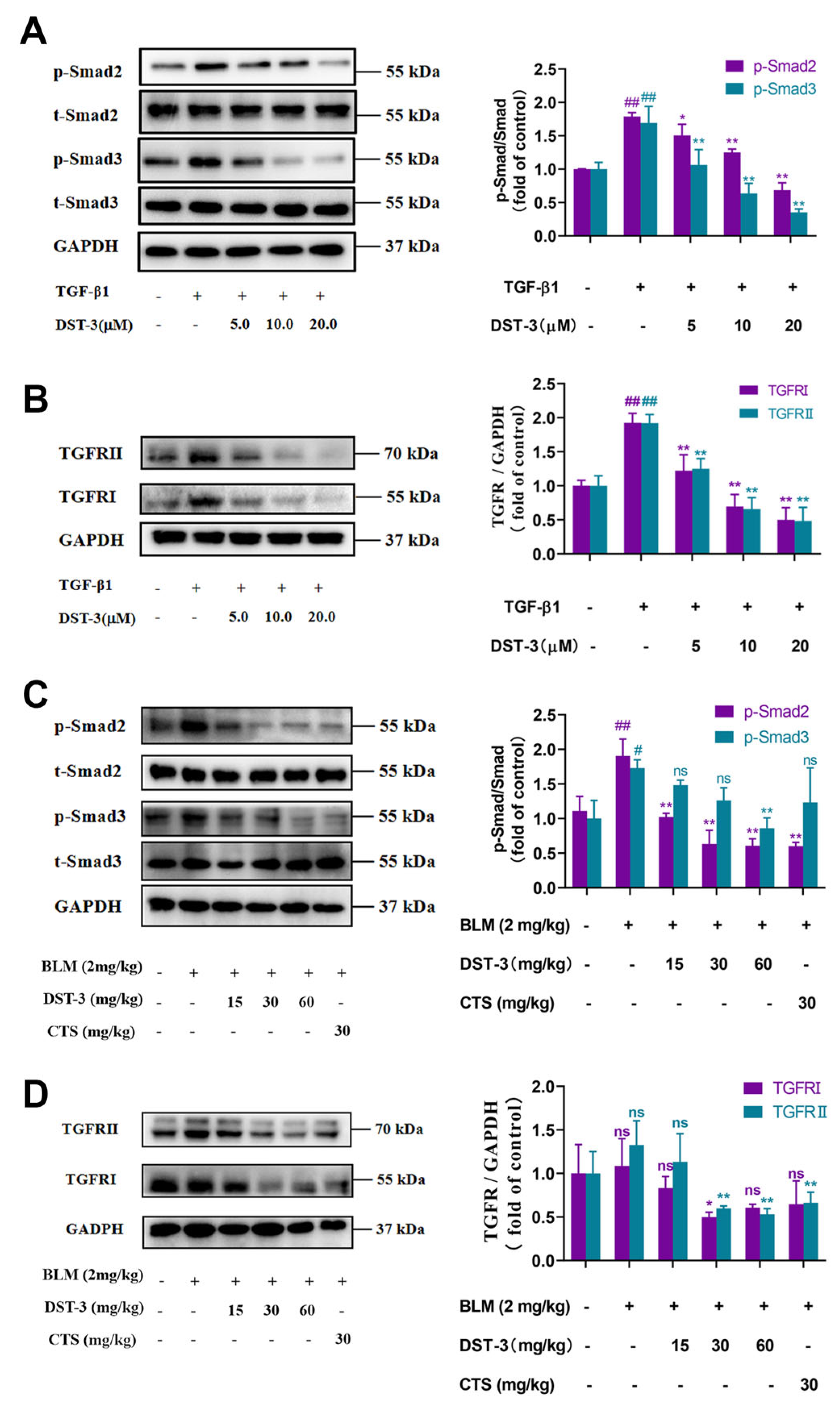 3.4. DST-3 Prevented TGF/Smad-Mediated Pulmonary Fibrosis