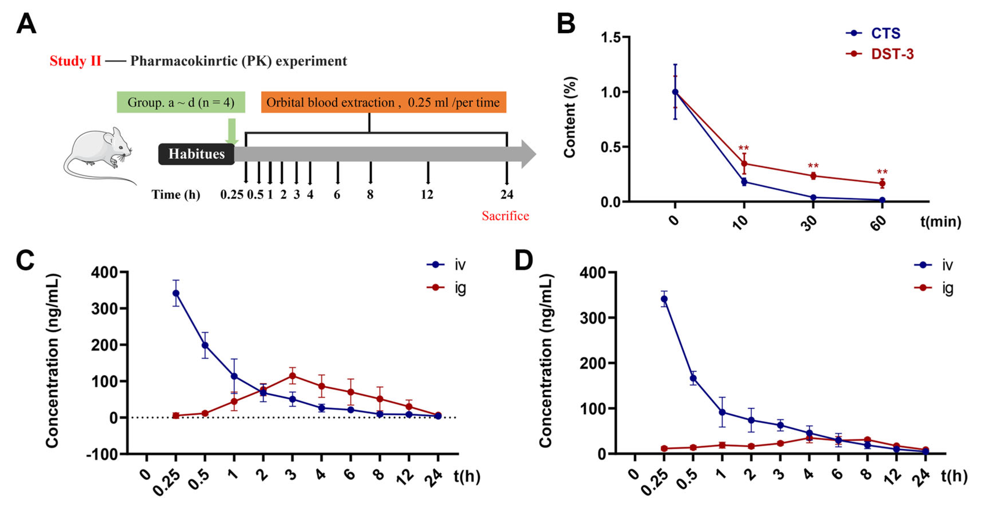 - DST-3 oral gavage of 60 mg/kg (0.5 h group, 3 h group, 10 h group, 24 h group).