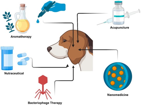Representation of alternative and novel therapies for canine otitis externa. “Created using Biorender https://app.biorender.com/, accessed on 8 July 2025”.