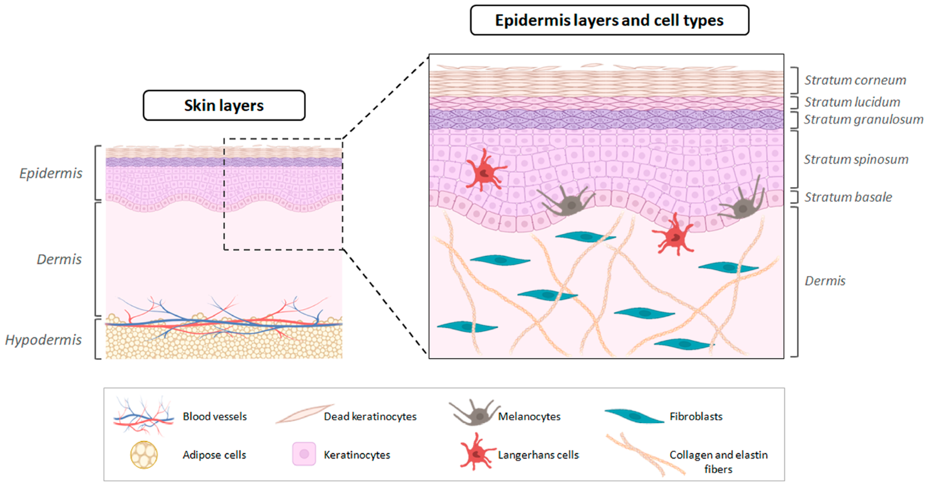 - Yousef, H.; Alhajj, M.; Sharma, S. Anatomy, Skin (Integument), Epidermis; StatPearls Publishing: Treasure Island, FL, USA, 2023. [Google Scholar]