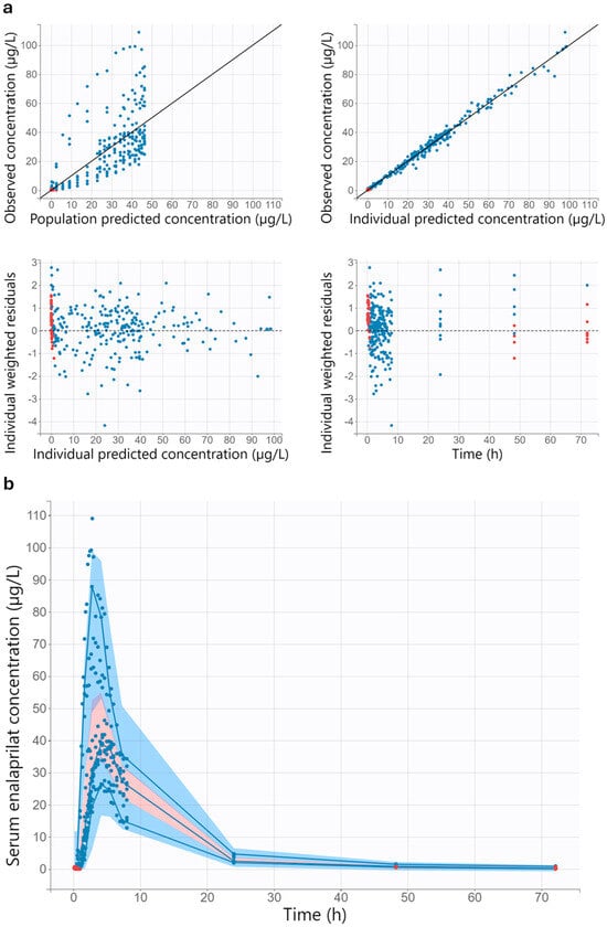 - Steichert, M.; Cawello, W.; Laeer, S. Population Pharmacokinetic Analysis of Enalapril and Enalaprilat in Newly Treated Children with Heart Failure: Implications for Safe Dosing of Enalapril (LENA Studies). Clin. Pharmacokinet. 2025, 64, 1103–1118. [Google Scholar] [CrossRef]