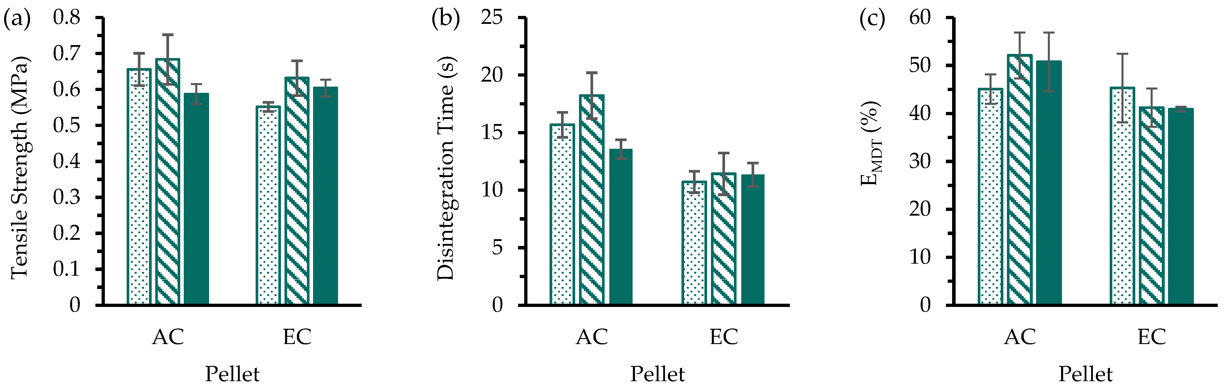 - Hiew, T.N.; Tian, Y.H.; Tan, H.M.; Heng, P.W.S. A Mechanistic Understanding of Compression Damage to the Dissolubility of Coated Pellets in Tablets. Eur. J. Pharm. Biopharm. 2020, 146, 93–100. [Google Scholar] [CrossRef] [PubMed]