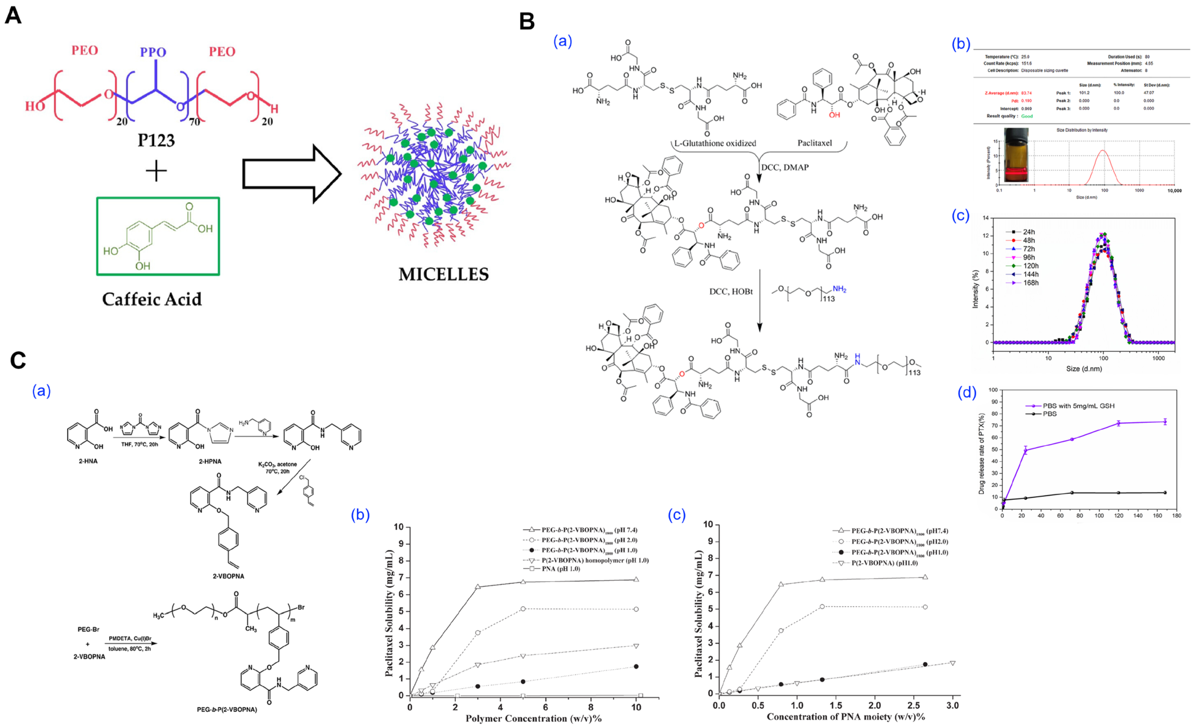 - Wei, Z.; Hao, J.; Yuan, S.; Li, Y.; Juan, W.; Sha, X.; Fang, X. Paclitaxel-loaded Pluronic P123/F127 mixed polymeric micelles: Formulation, optimization and in vitro characterization. Int. J. Pharm. 2009, 376, 176–185. [Google Scholar] [CrossRef]