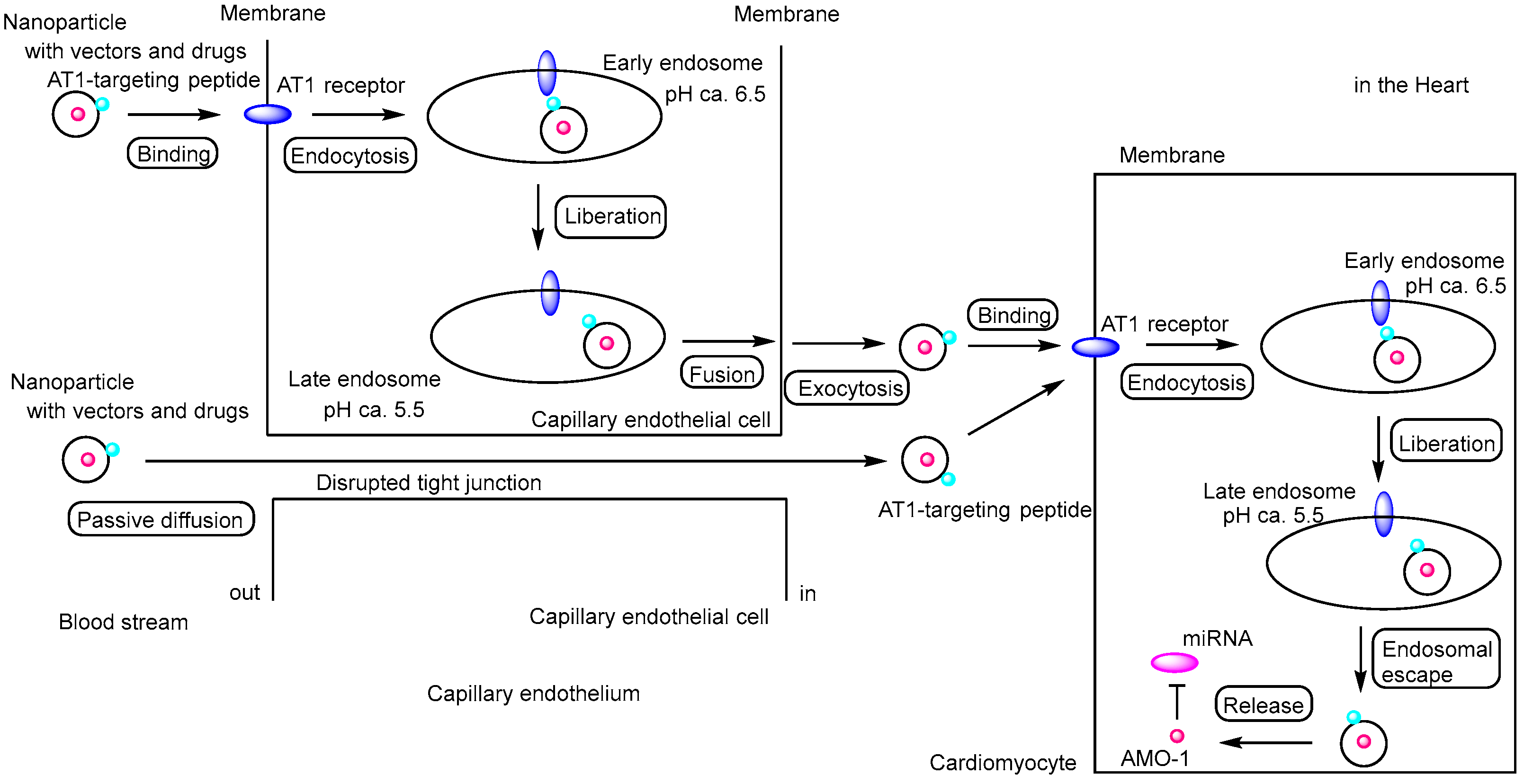| ii | AMO-1 encapsulated in a nanovector (AT1-PEG-DGL) conjugated with an AT1-targeting peptide | AT1-targeting peptide | AMO-1 | Basic research | [44] |