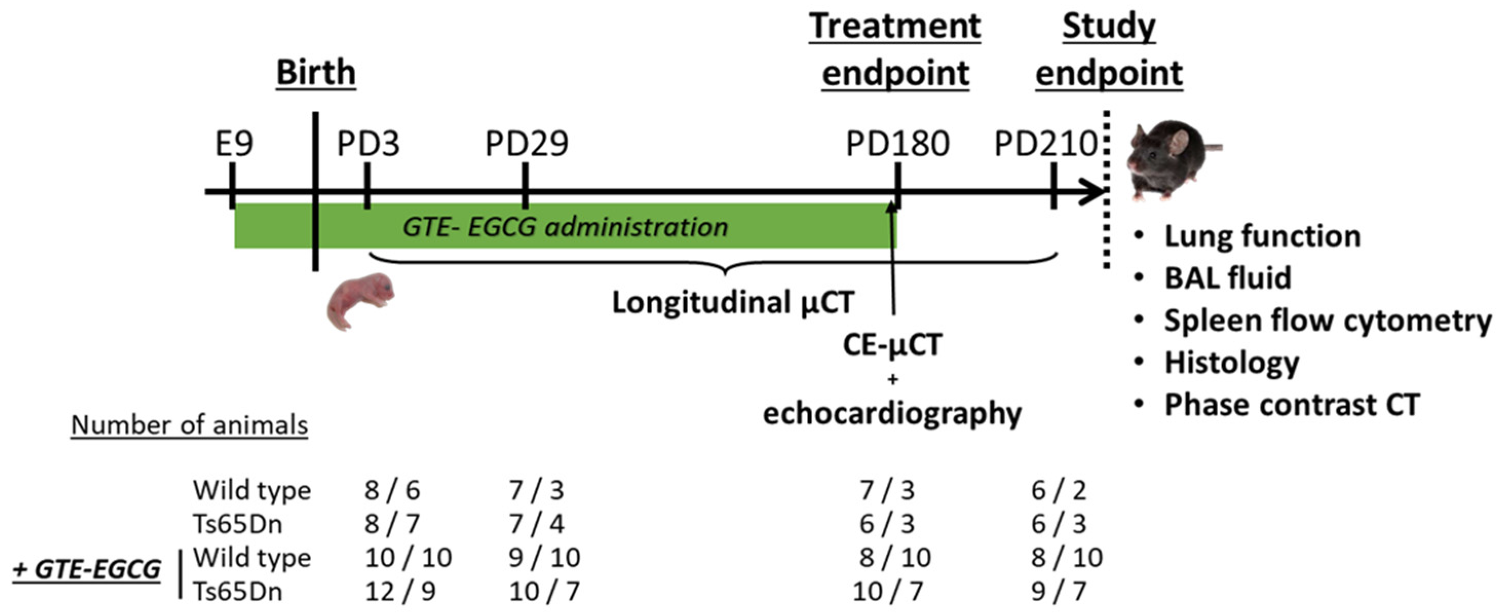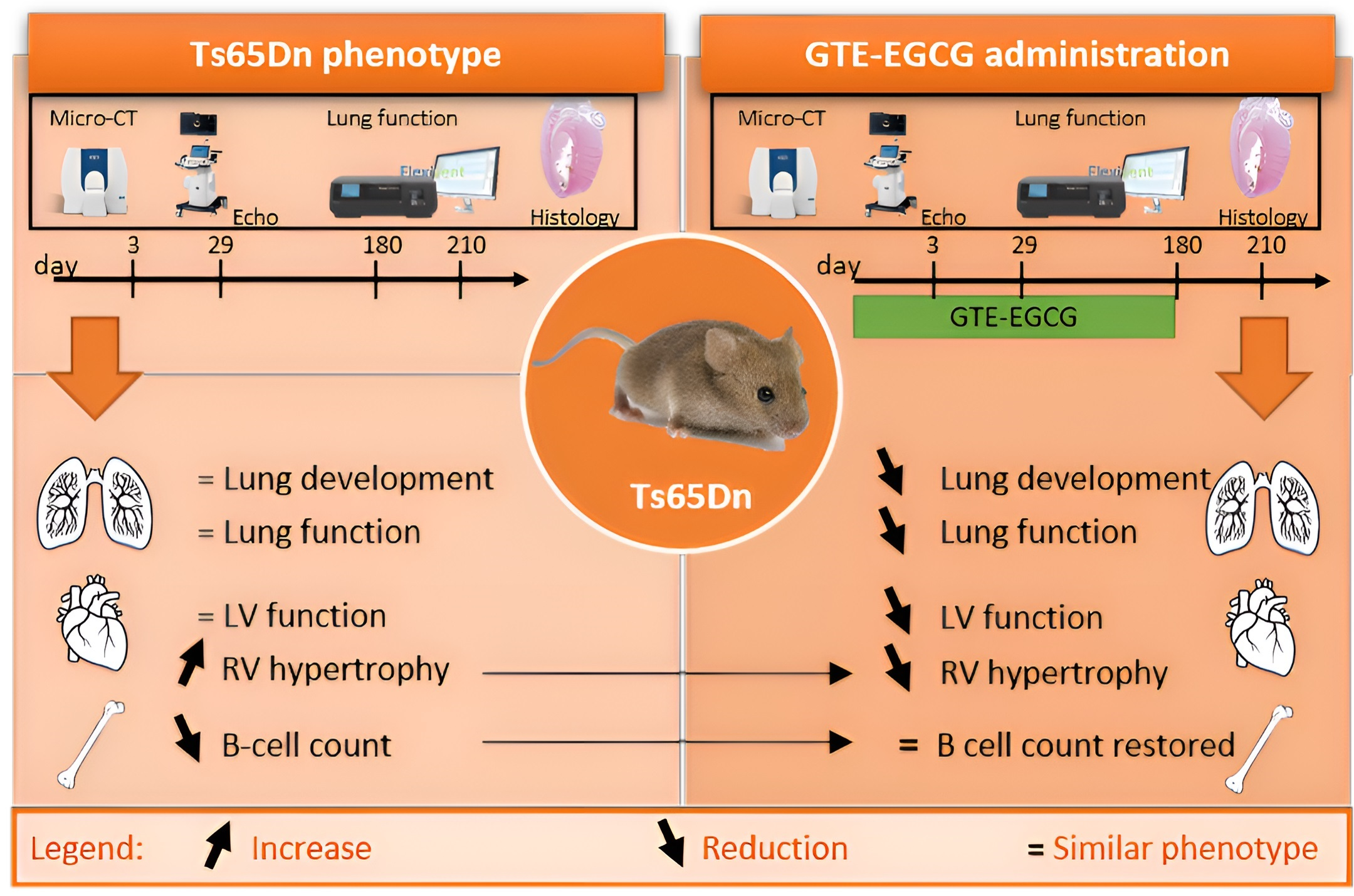 Tielemans B, Llambrich S, Seldeslachts L, Cremer J, Tsui HC, Jonckheere A-C, Marain NF, Riedel M, Wouters J, Herzen J, et al. Cardiopulmonary and Immune Alterations in the Ts65Dn Mouse Model of Down Syndrome and Modulation by Epigallocatechin-3-Gallate-Enriched Green Tea Extract. Pharmaceutics. 2025; 17(11):1366. https://doi.org/10.3390/pharmaceutics17111366