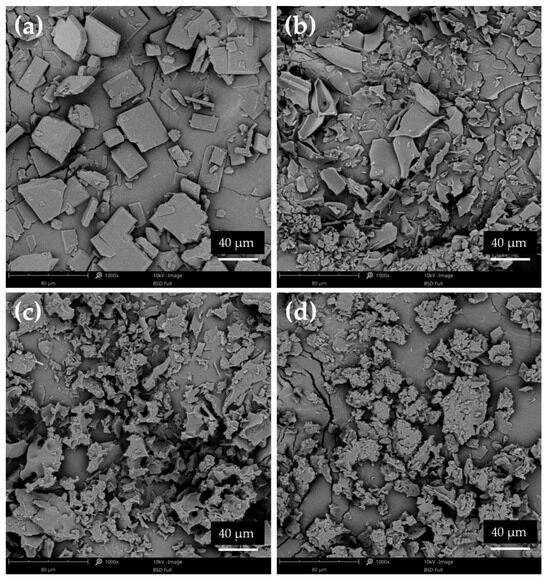 The different compositions of SDs (various polymers) affected the varied morphology of obtained particles. Figure 11a presents that the cryo-milling process reduced the ETD particles; however, the formation of ETD aggregates was observed. SDs with HPMC possessed the characteristic structure of this carrier (Figure 11b,c). SEM analysis of SDs with poloxamer demonstrated a spherical morphology, which is characteristic of this carrier. Only for PVP/VA, its typical morphology was not visible on SEM scans (Figure 11d,e). The reduction in particles size of SDs formulations was noted in all images.