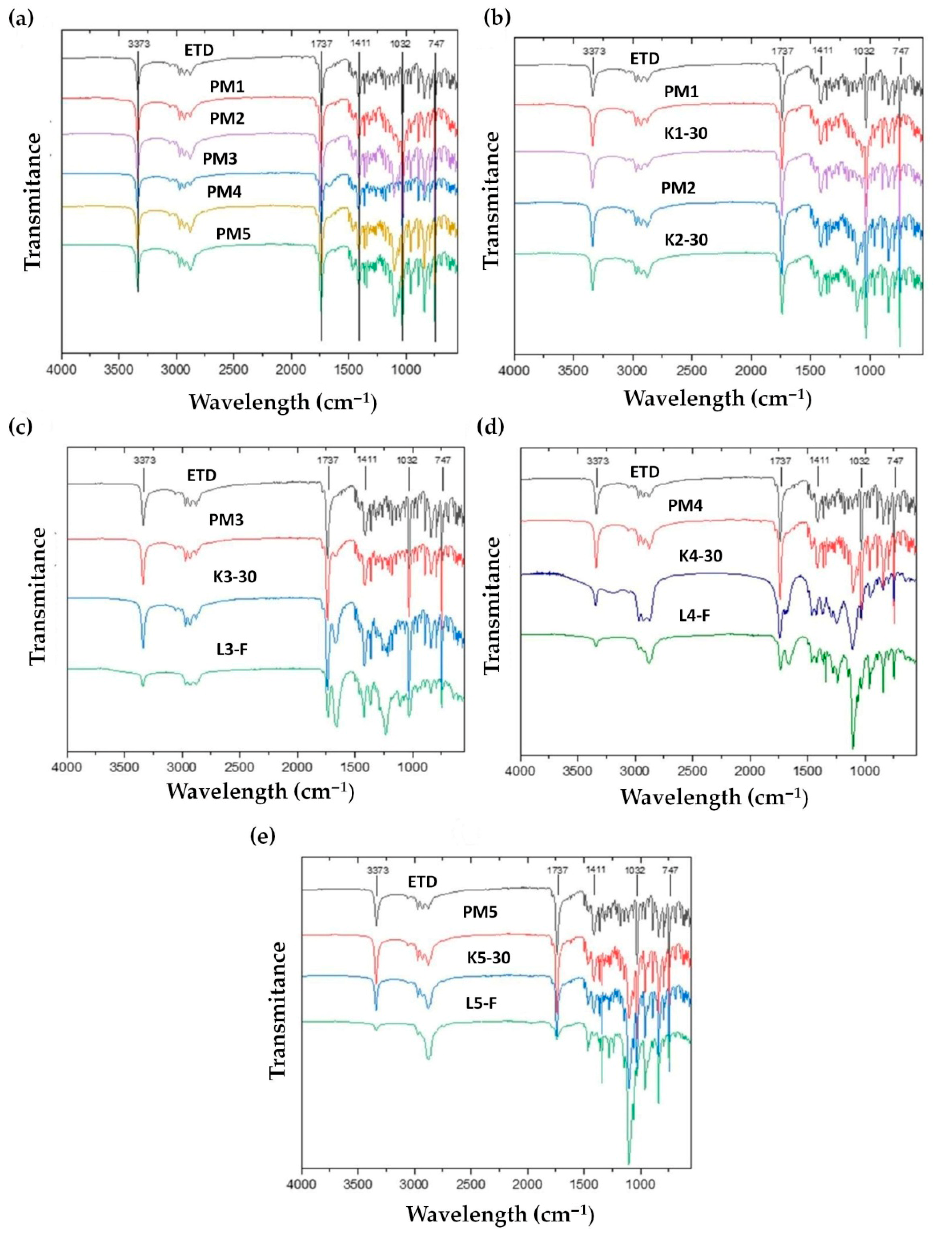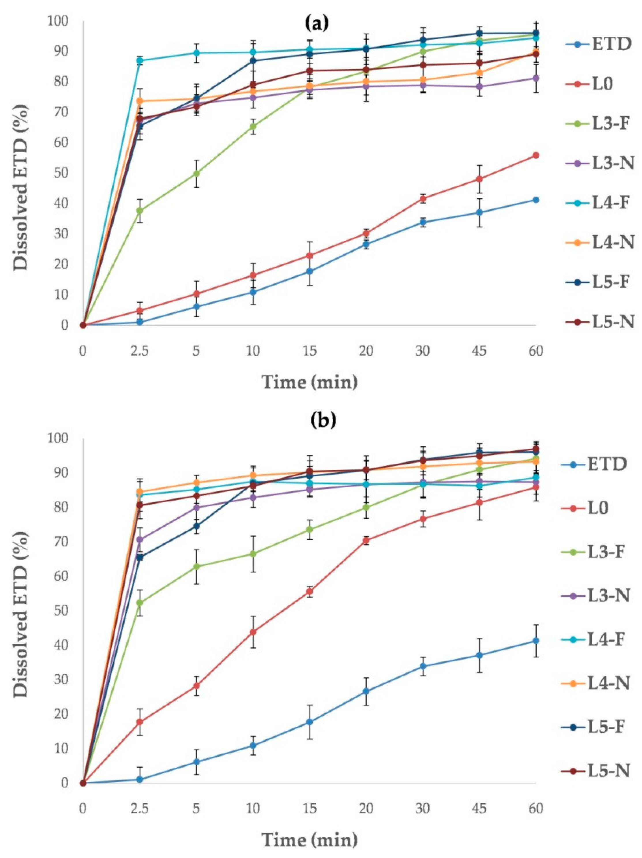 | ETD, PVP/VA, poloxamer | 33.33 + 33.33 + 33.33 | K4-30 (30) K4-60 (60) | L4-F (F) L4-N (N) |