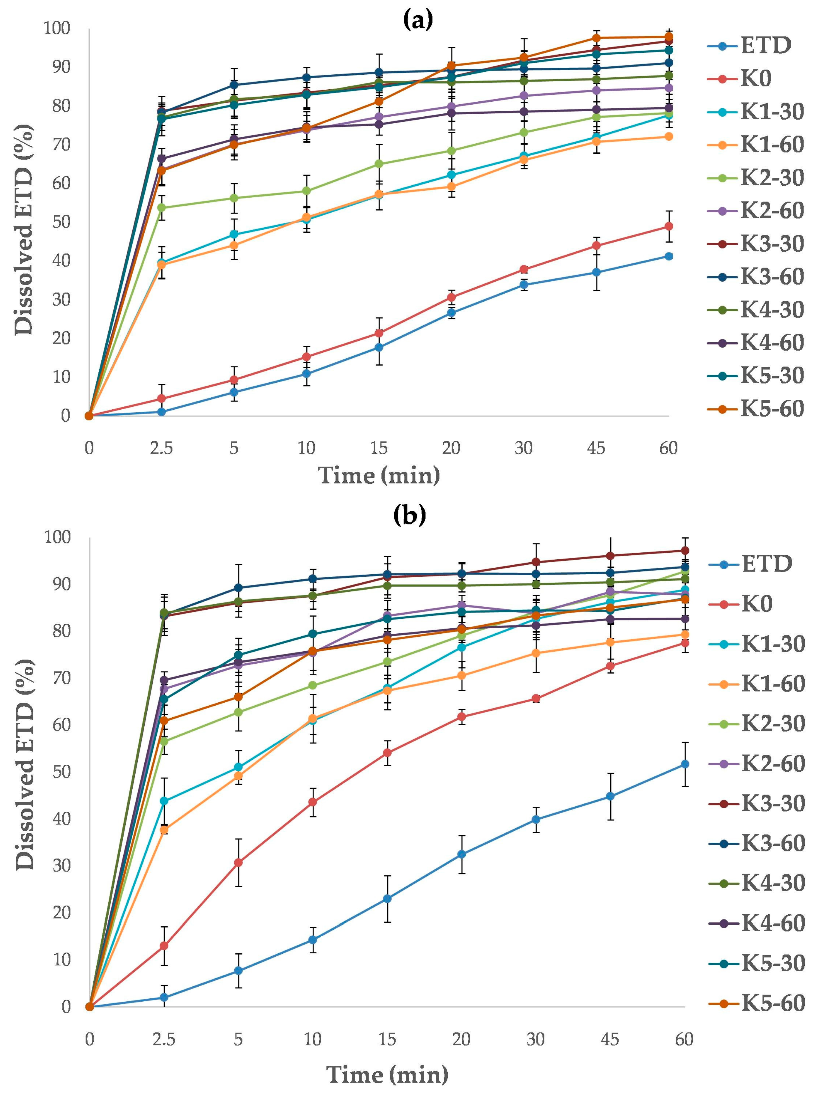 | ETD, HPMC, poloxamer | 33.33 + 33.33 + 33.33 | K2-30 (30) K2-60 (60) | L2-F (F) L2-N (N) |