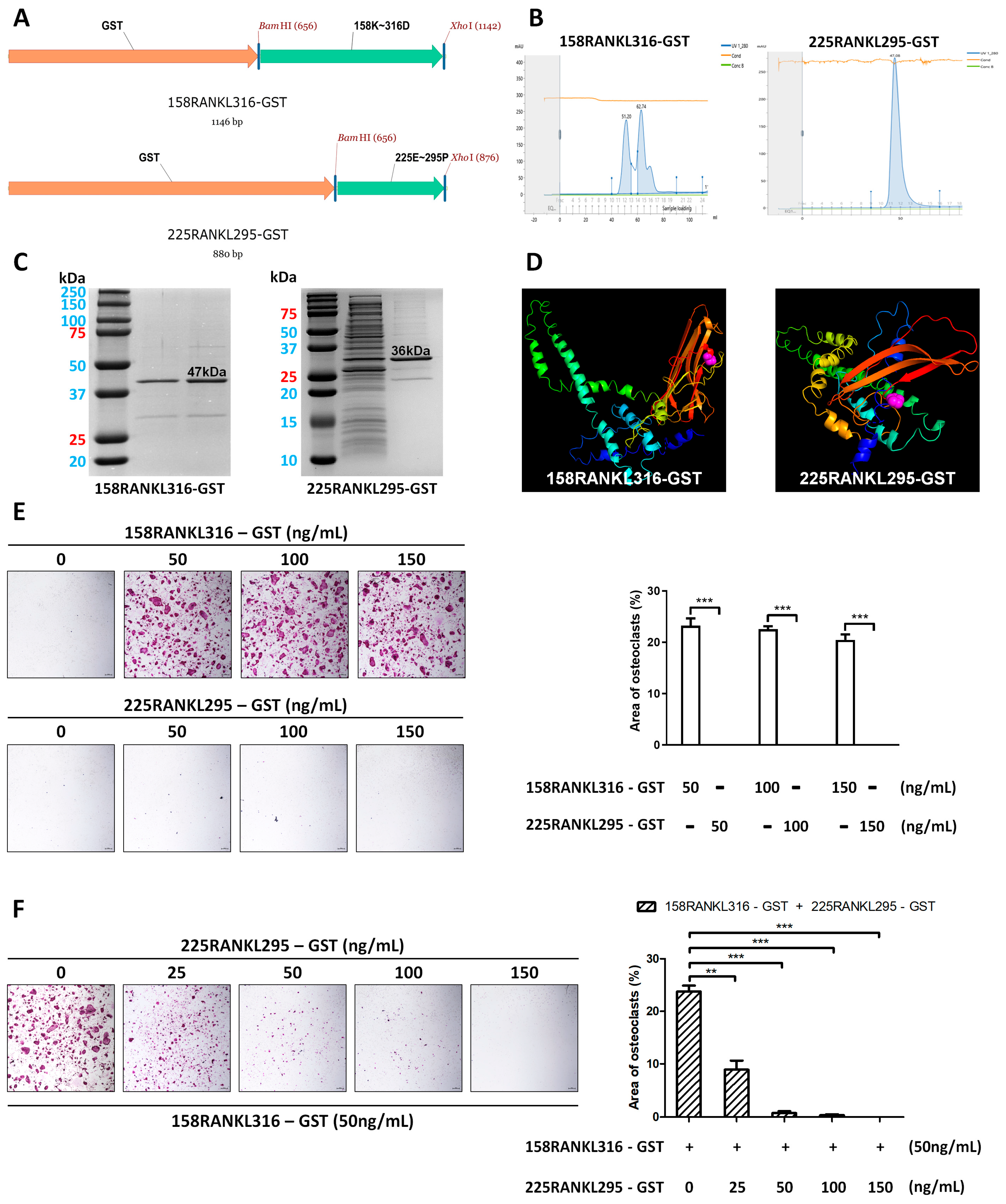 3.1. GST-Tagged 158RANKL316 and 225RANKL295 Proteins