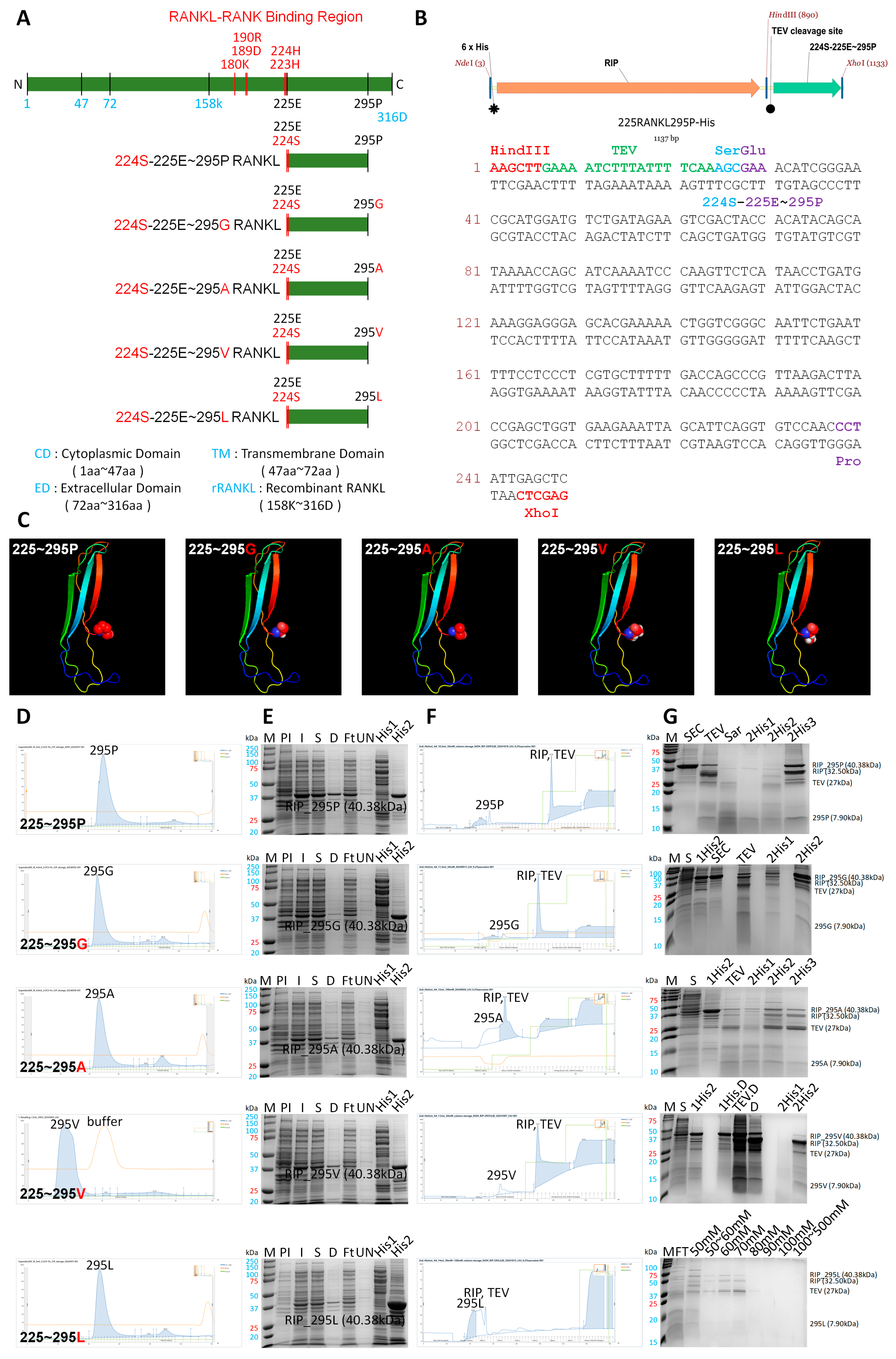2.5. Construction of His-Tagged RANKL Variant Expression Vector