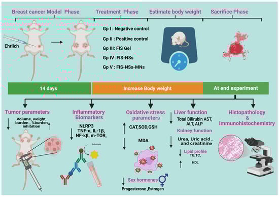 Schematic representation of the in vivo study utilizing breast cancer using Ehrlich model.