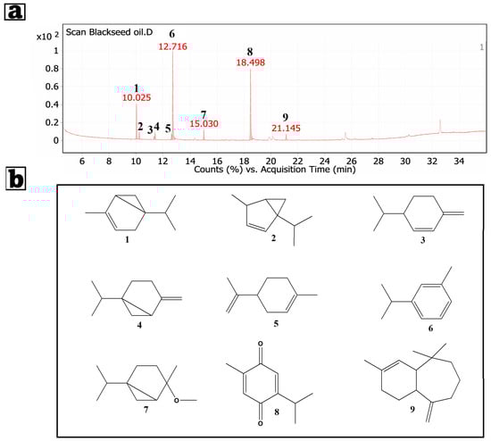 - Hassanien, M.F.R.; Assiri, A.M.A.; Alzohairy, A.M.; Oraby, H.F. Health-Promoting Value and Food Applications of Black Cumin Essential Oil: An Overview. J. Food Sci. Technol. 2015, 52, 6136–6142. [Google Scholar] [CrossRef]