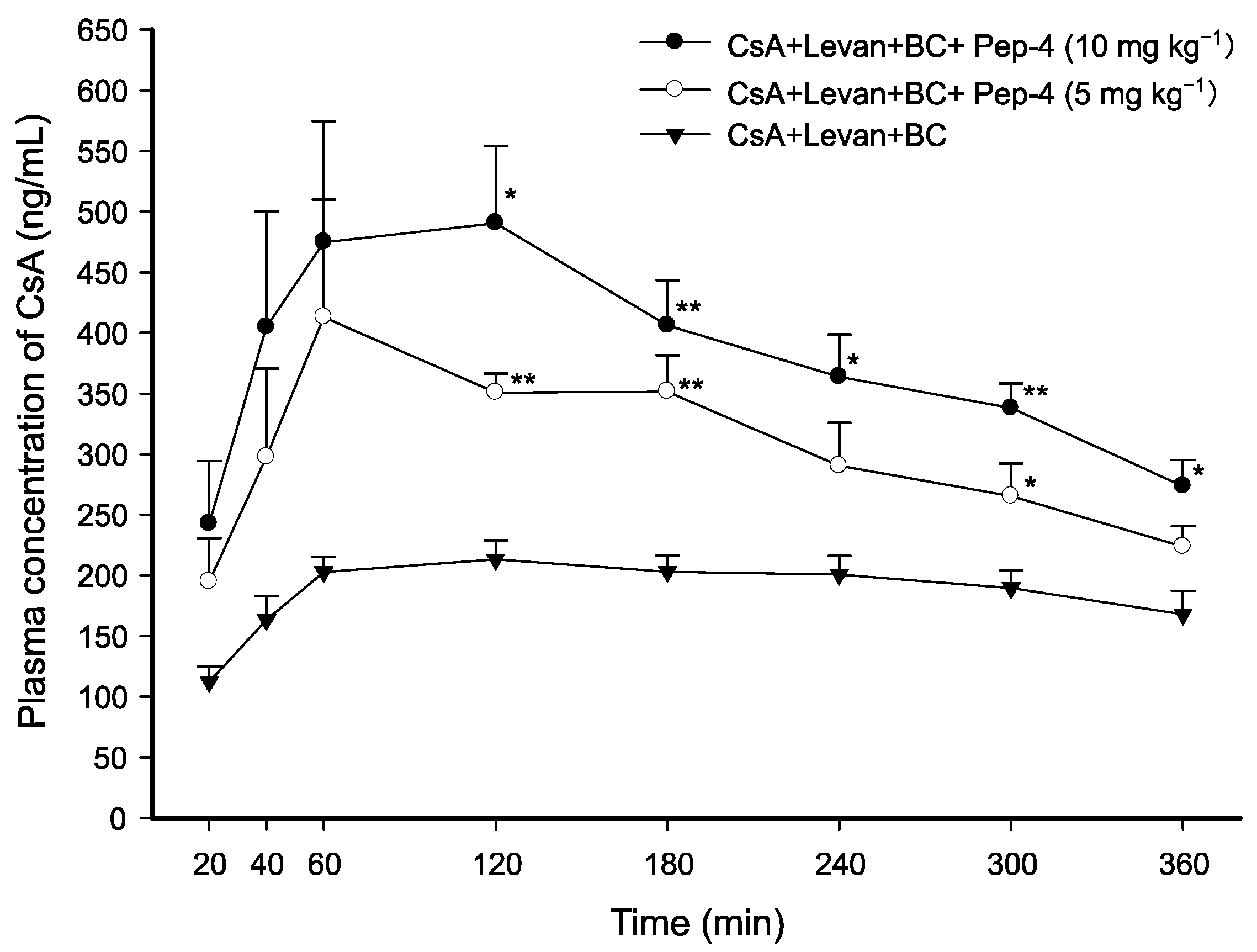 3.2. Intraduodenal Administration of CsA with FCIGRL-NH2, C-Terminal Amidated FCIGRL