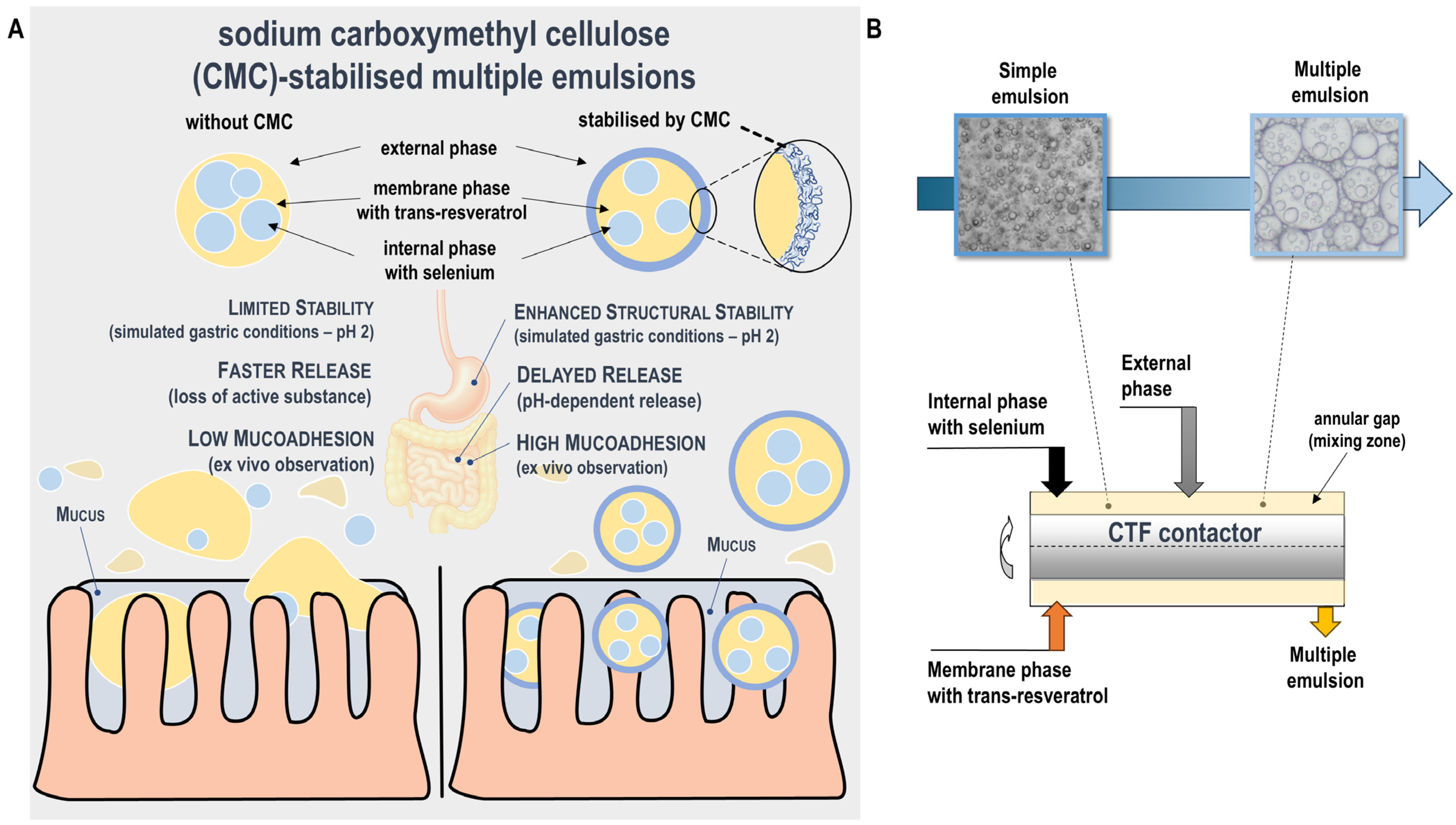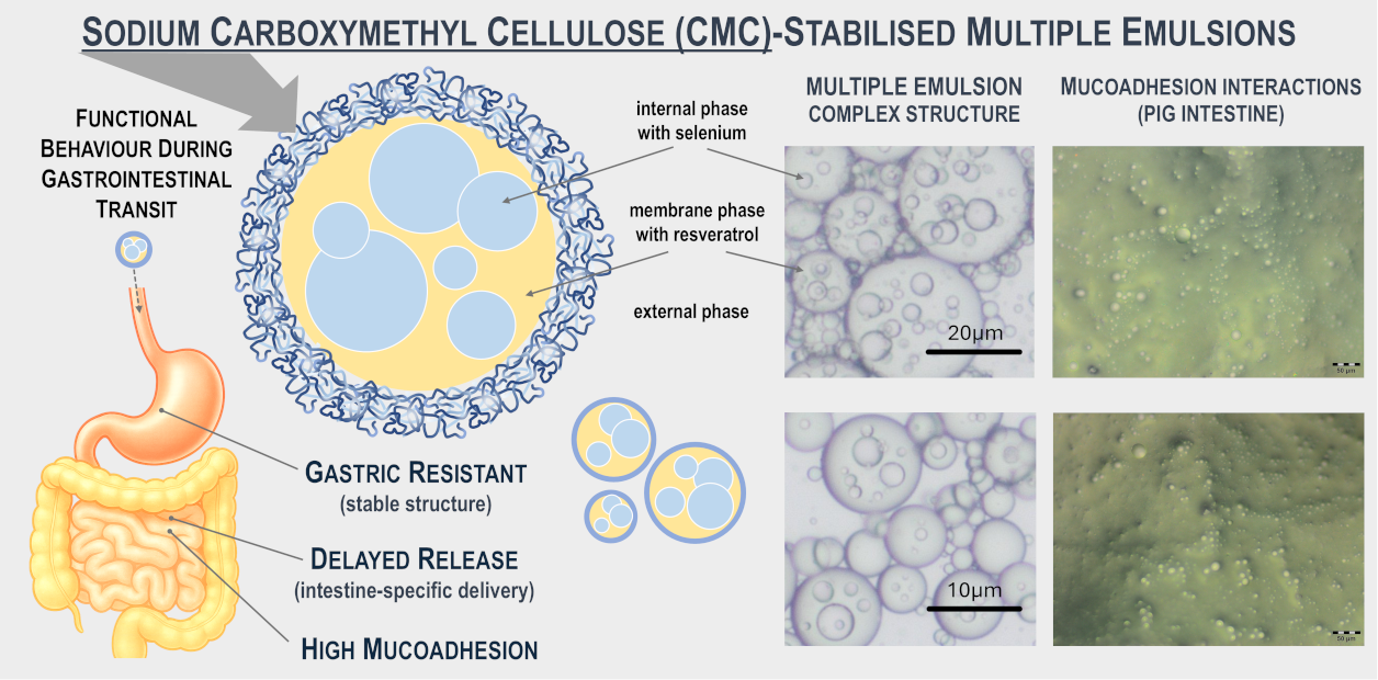 Sodium Carboxymethyl Cellulose-Stabilised Multiple Emulsions with pH-Sensitive Behaviour, Enhanced Stability and Mucoadhesion for Oral Delivery of Chemopreventive Agents