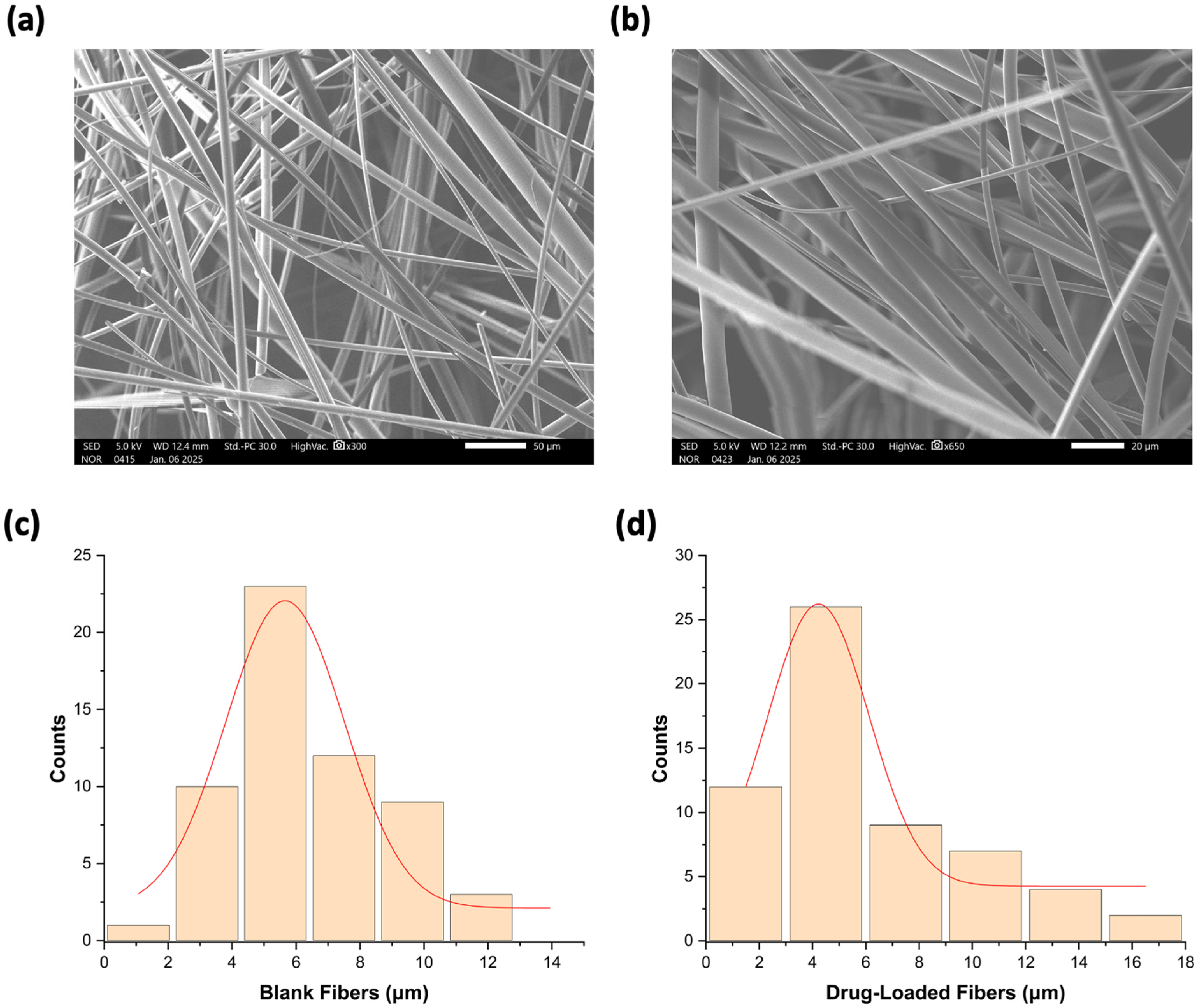 2.8. Drug Release Determination of Drug-Loaded Fibers