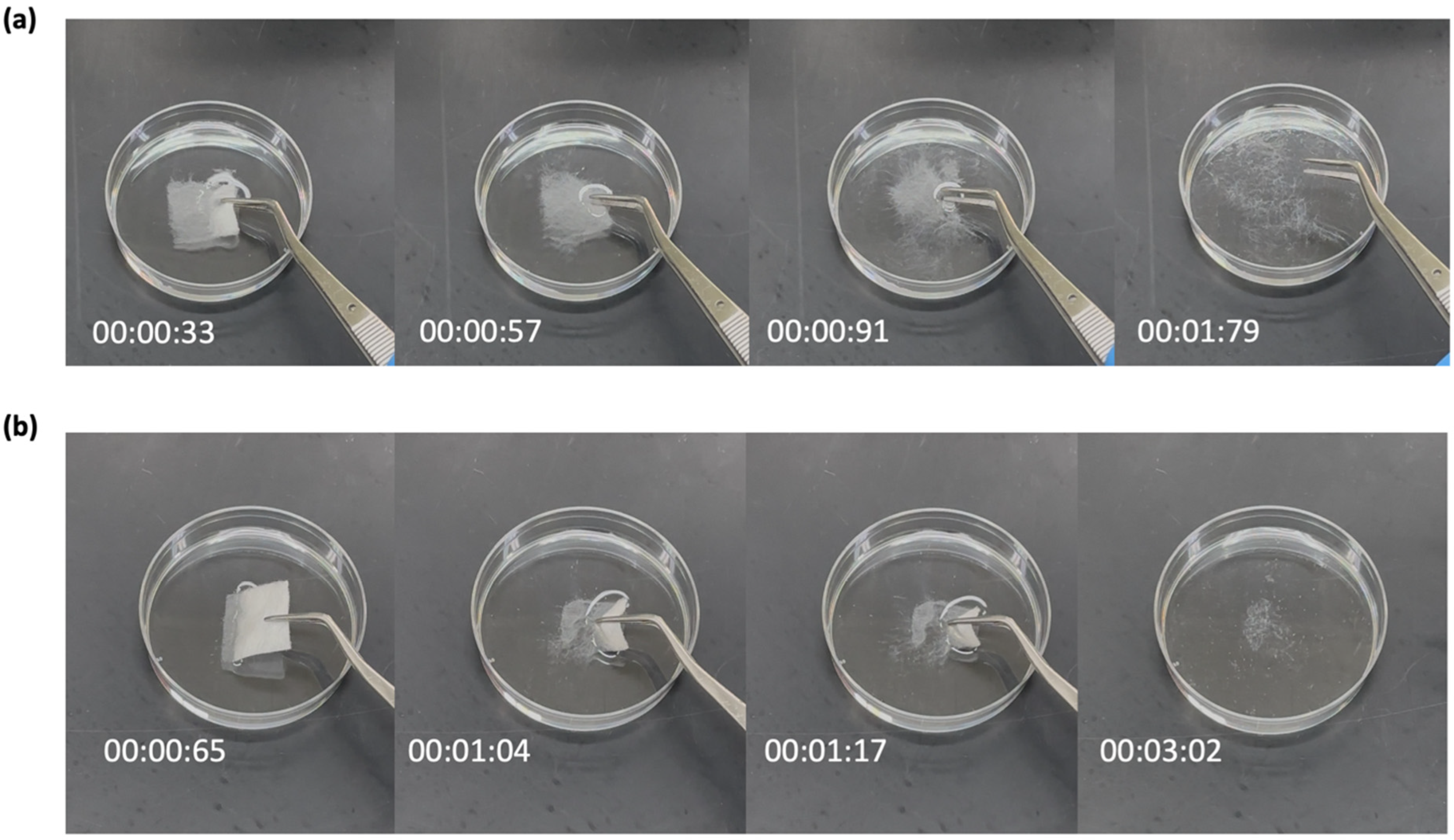 3.2. Disintegration Test of the Drug-Loaded Microfibers