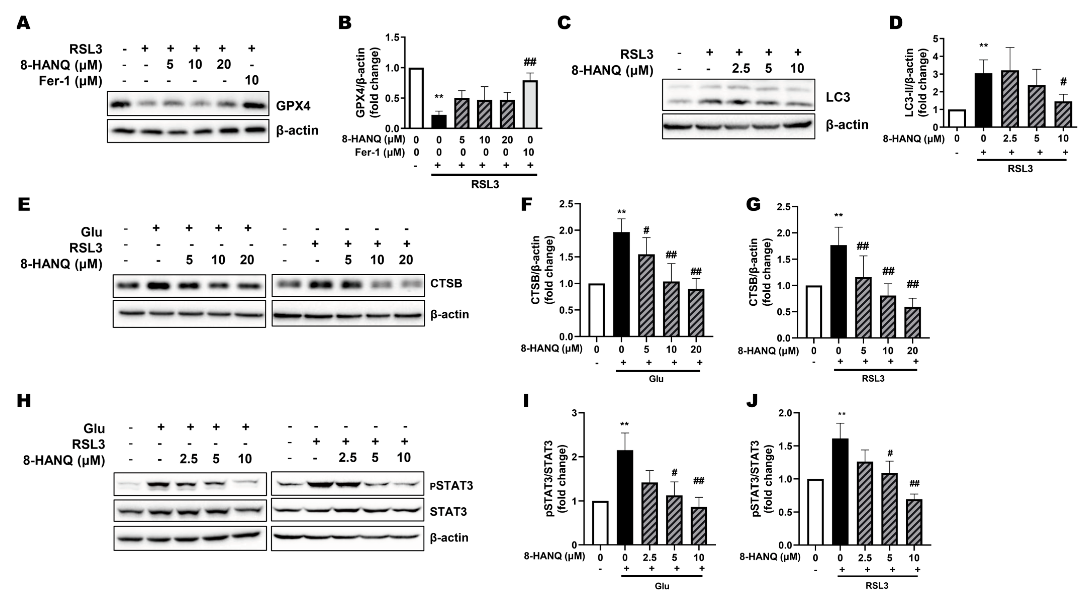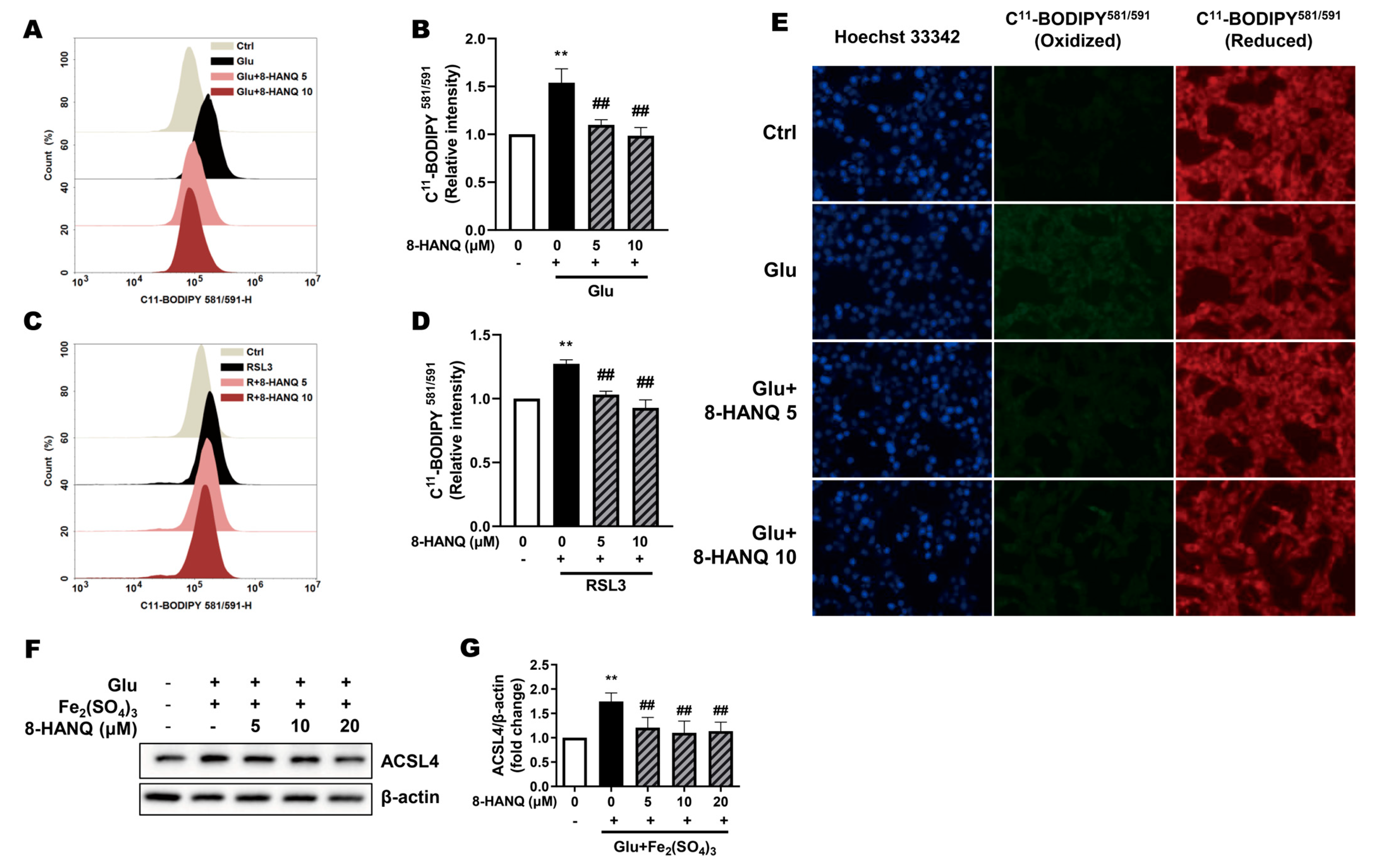 3.3. 8-HANQ Suppresses Lipid ROS Accumulation to Inhibit Ferroptosis