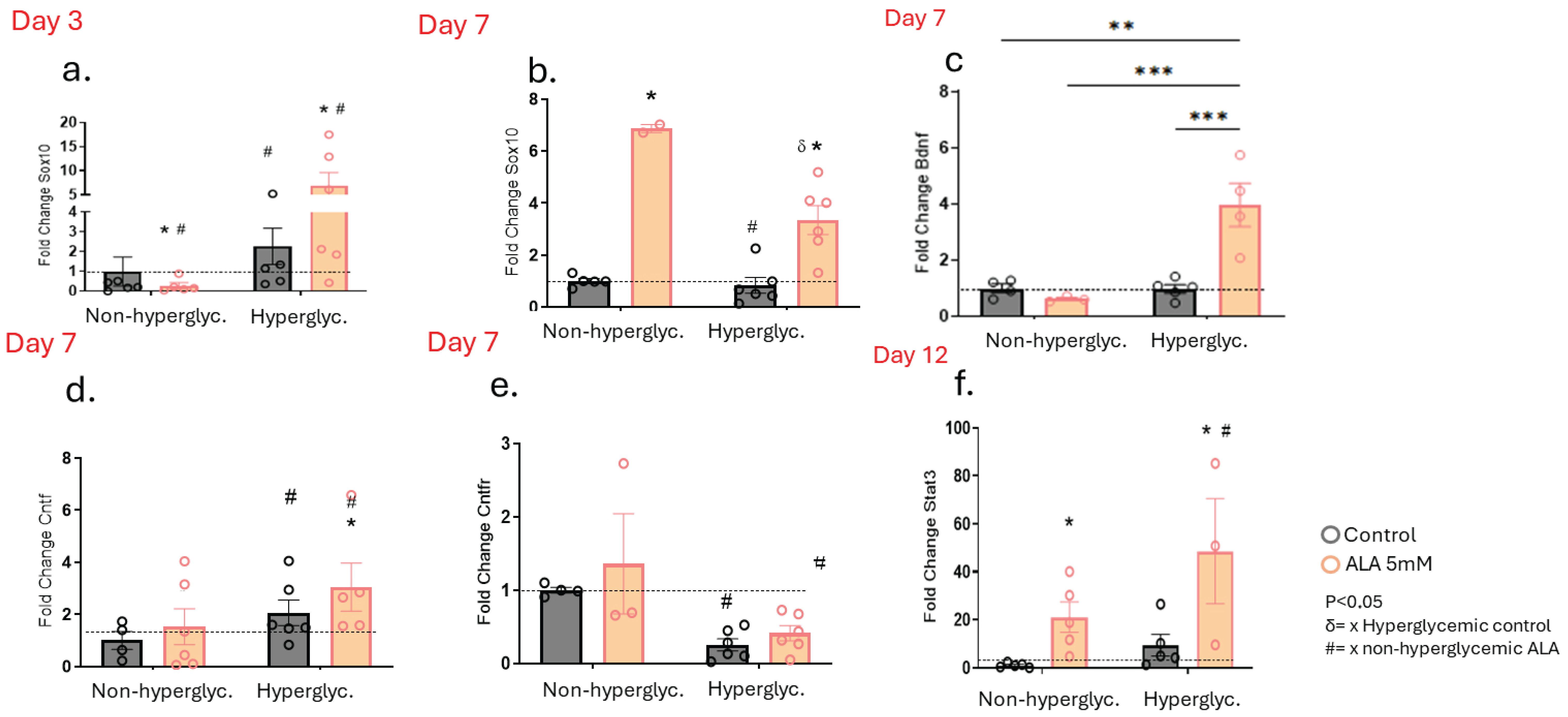 3.6. α-Linolenic Acid (ALA) Increases Gene Expression Involved in the Survival and Growth of Neurons in Wounds of Hyperglycemic and Non-Hyperglycemic Mice