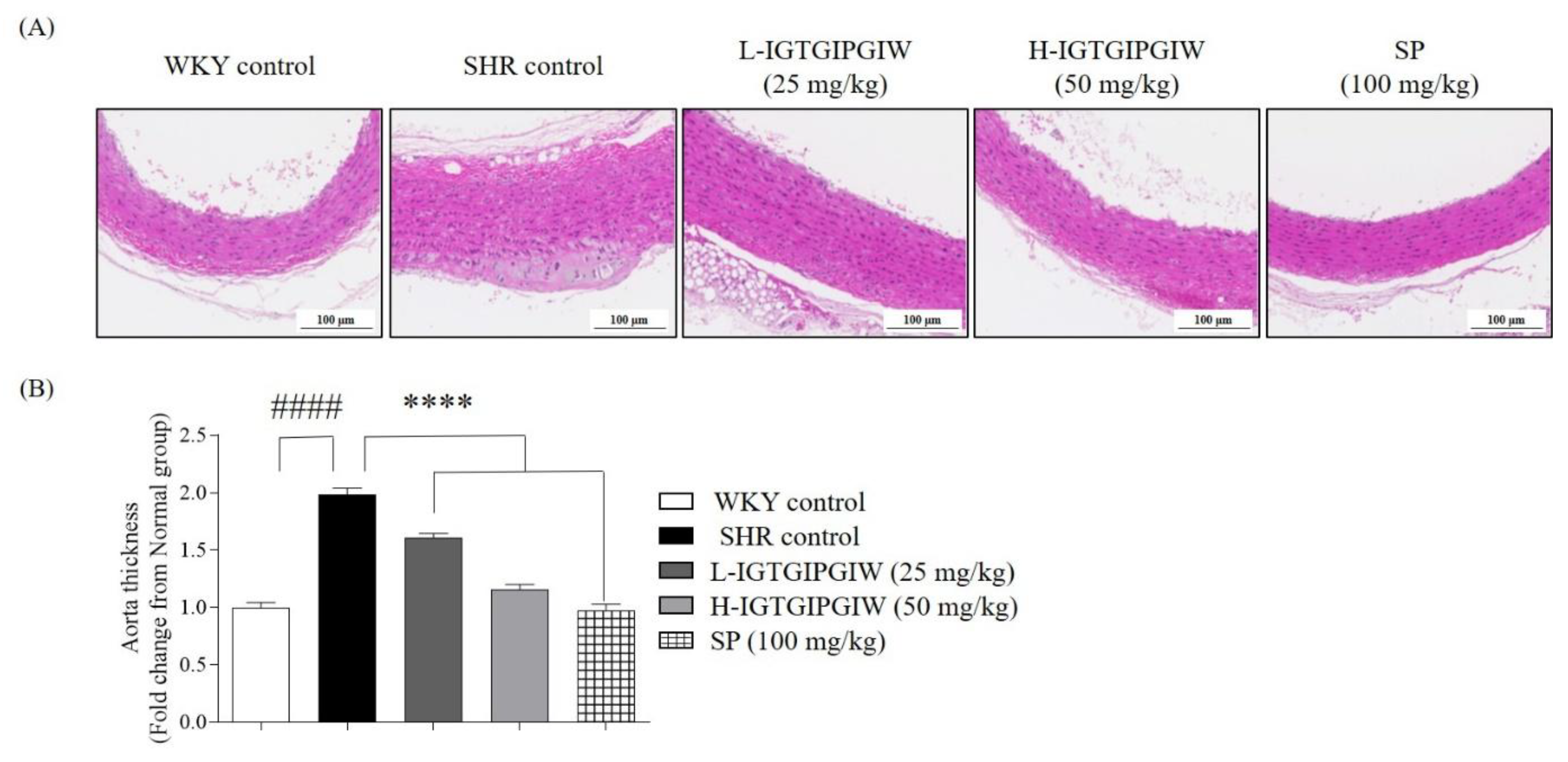 3.3. Protective Effect of IGTGIPGIW on Hypertension-Induced Aortic Wall Damage in SHR
