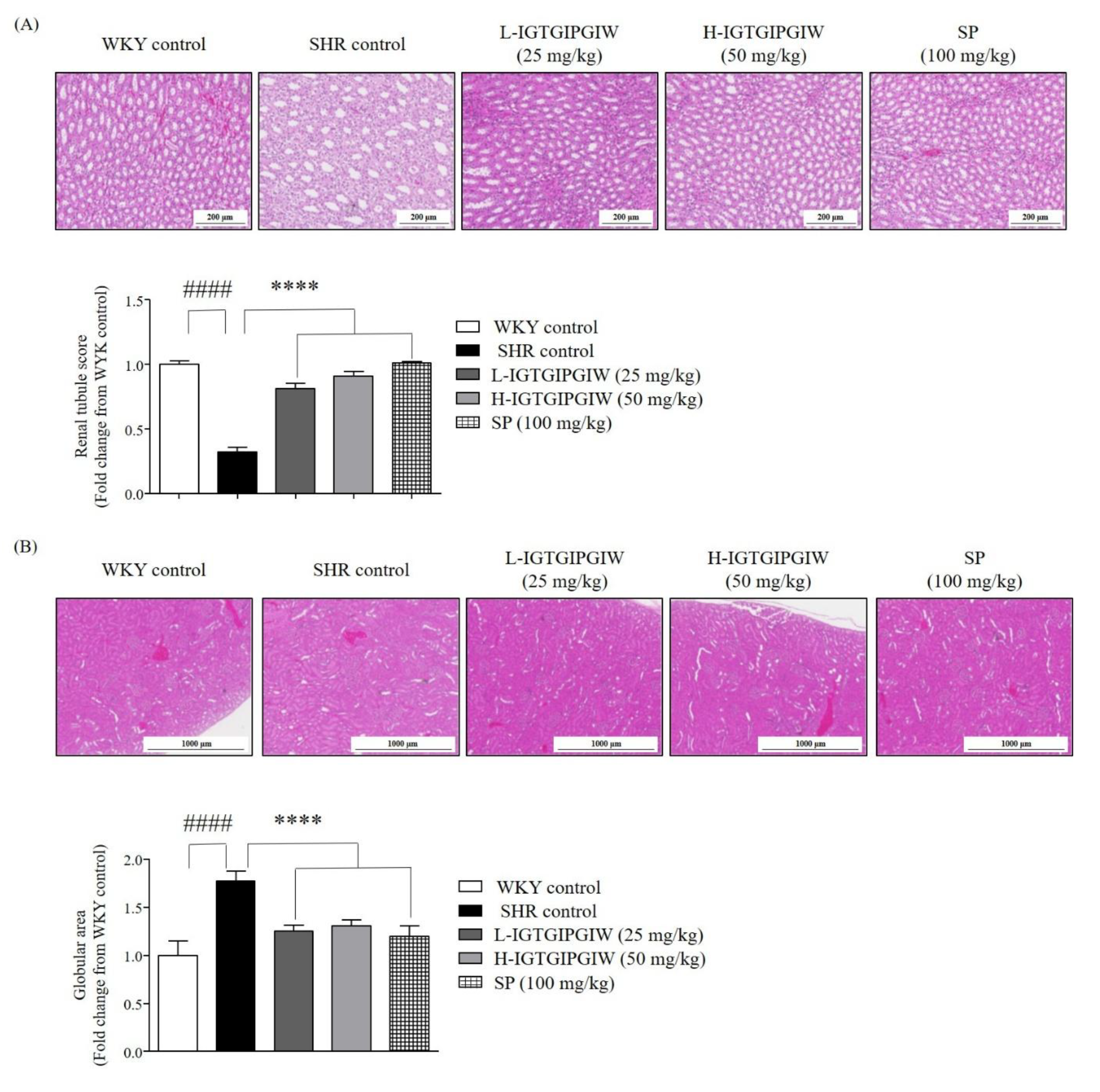 3.4. Protective Effect of IGTGIPGIW on Hypertension-Induced Kidney Damage in SHR