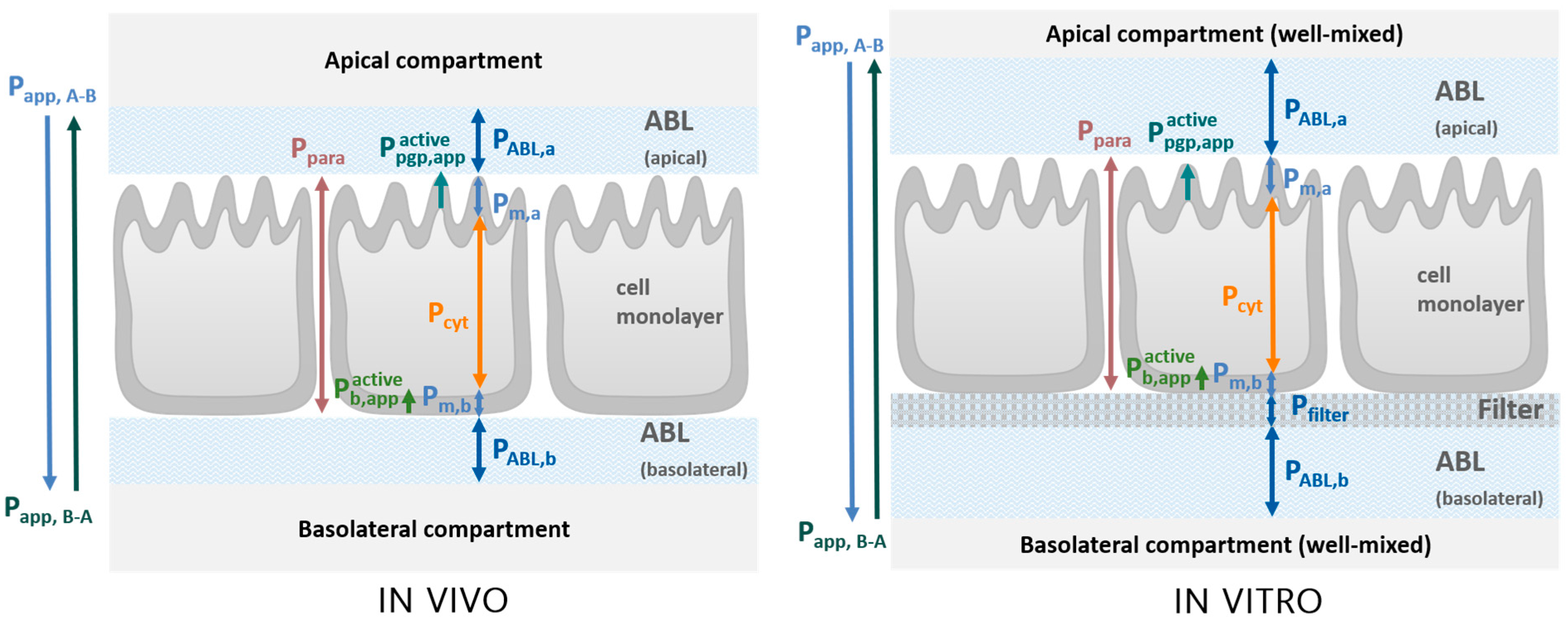 - Kotze, S.; Ebert, A.; Goss, K.U. Effects of Aqueous Boundary Layers and Paracellular Transport on the Efflux Ratio as a Measure of Active Transport Across Cell Layers. Pharmaceutics 2024, 16, 132. [Google Scholar] [CrossRef]