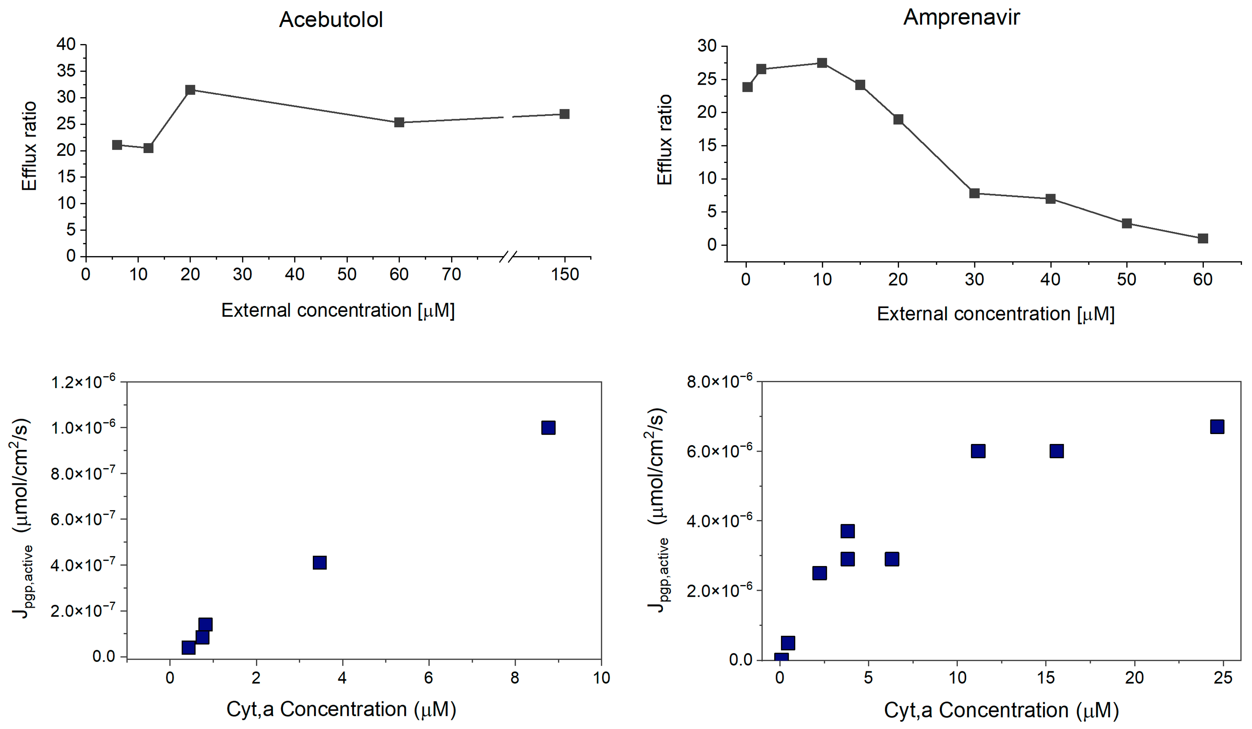 - Kotze, S.; Goss, K.-U.; Ebert, A. The pH-dependence of efflux ratios determined with bidirectional transport assays across cellular monolayers. Int. J. Pharm. X 2024, 8, 100269. [Google Scholar] [CrossRef]