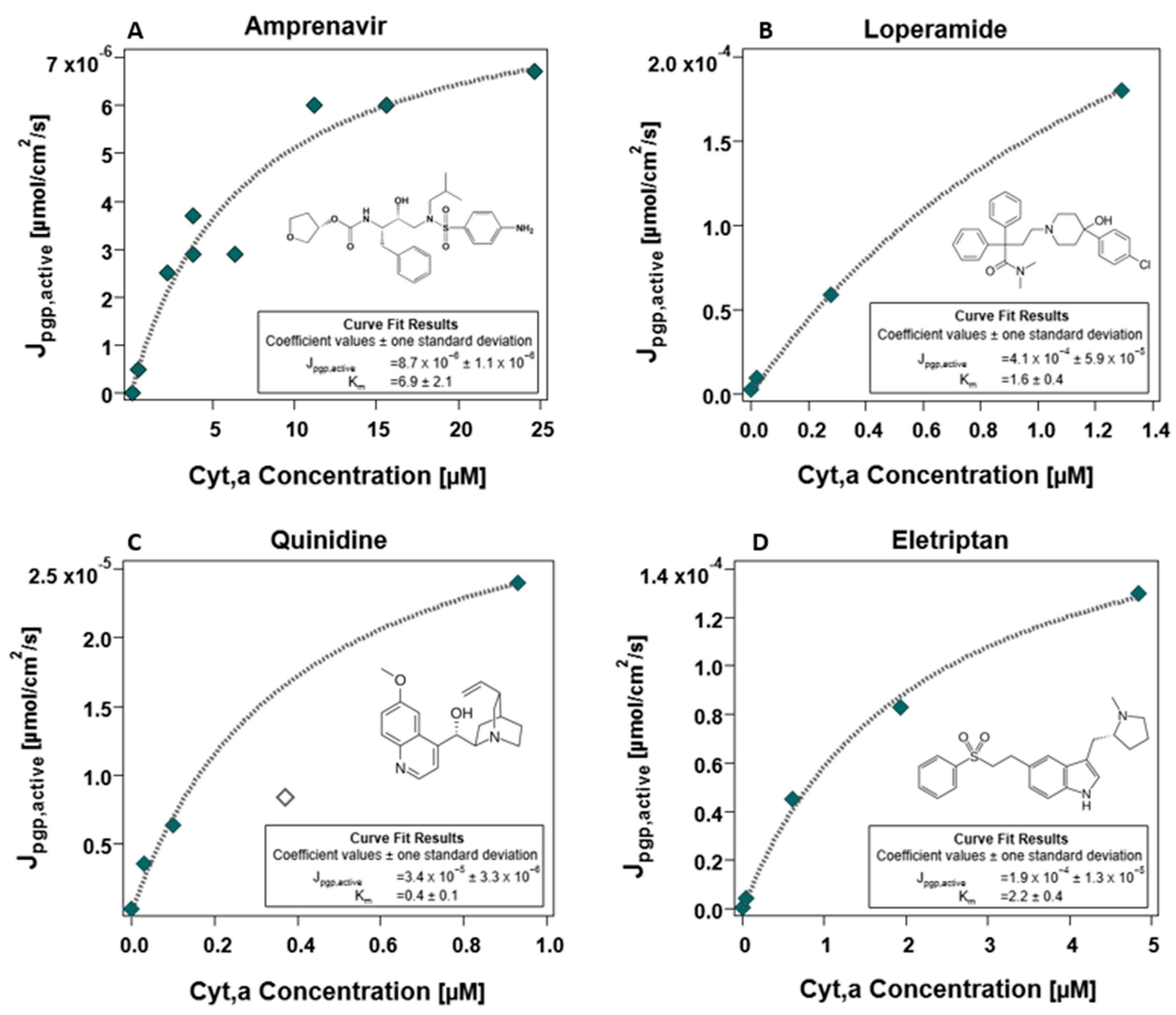 - Tachibana, T.; Kitamura, S.; Kato, M.; Mitsui, T.; Shirasaka, Y.; Yamashita, S.; Sugiyama, Y. Model analysis of the concentration-dependent permeability of p-gp substrates. Pharm. Res. 2010, 27, 442–446. [Google Scholar] [CrossRef] [PubMed]