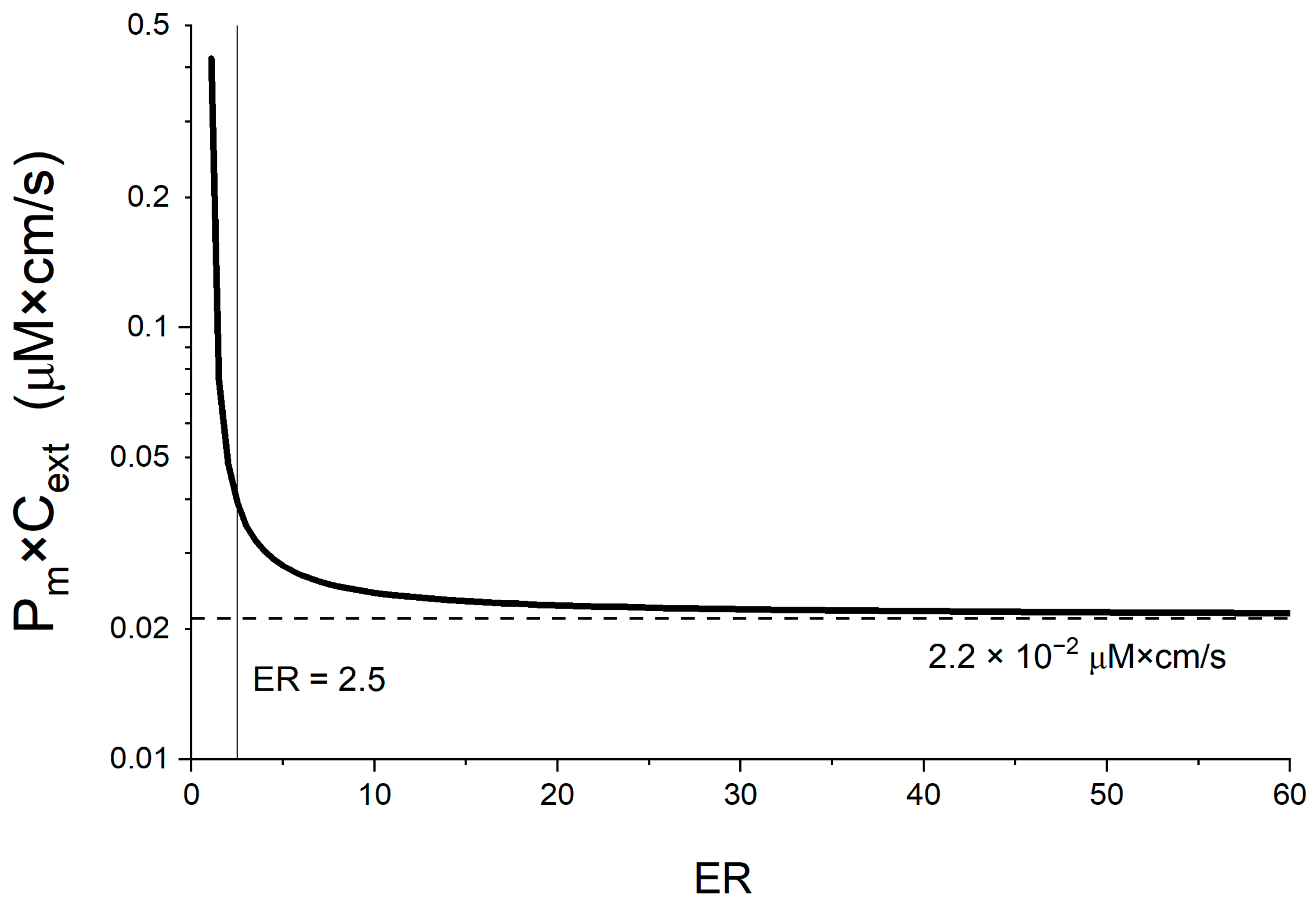 3.2.5. Linking the Maximal Flux Value with a Membrane Permeability Threshold