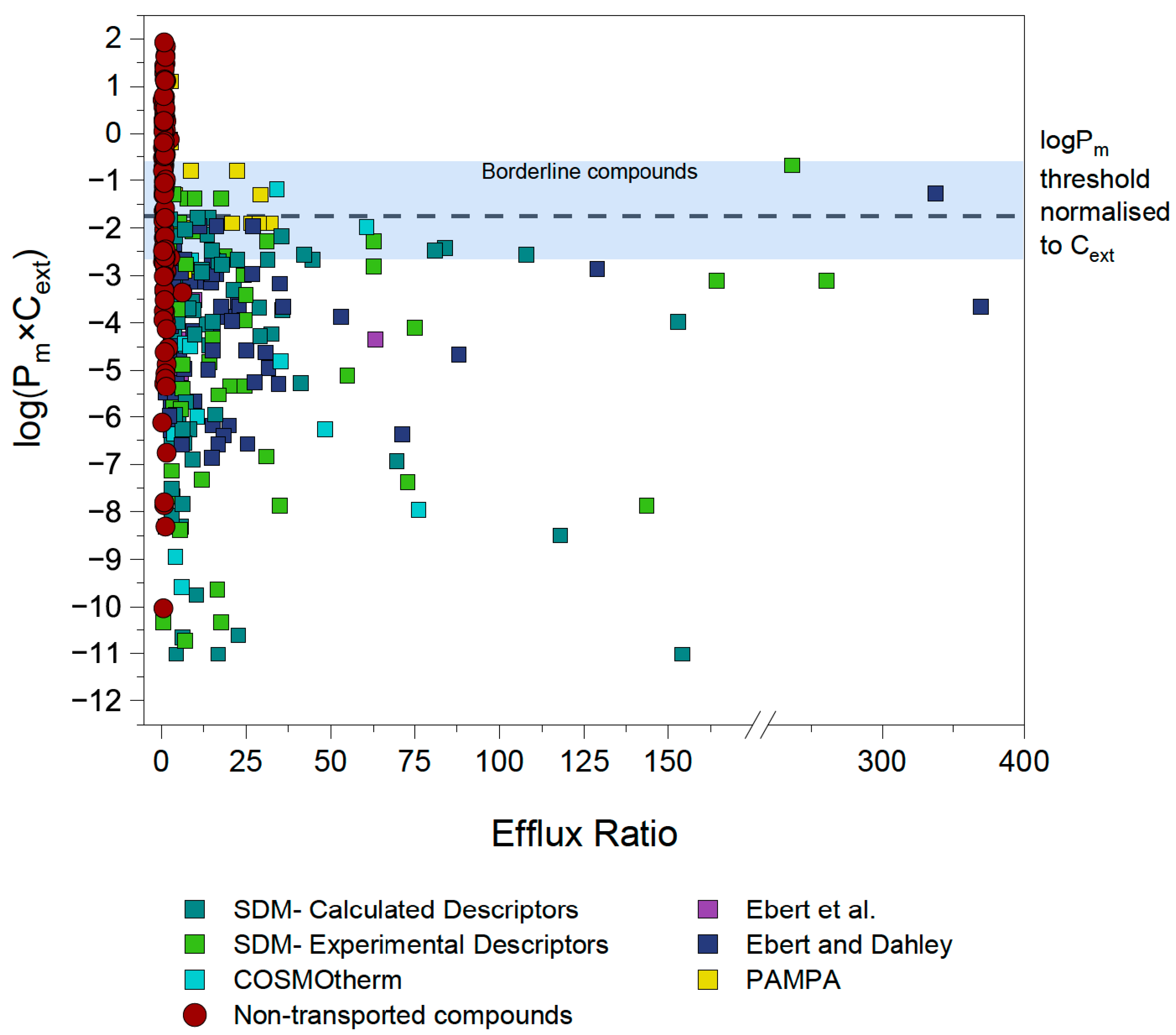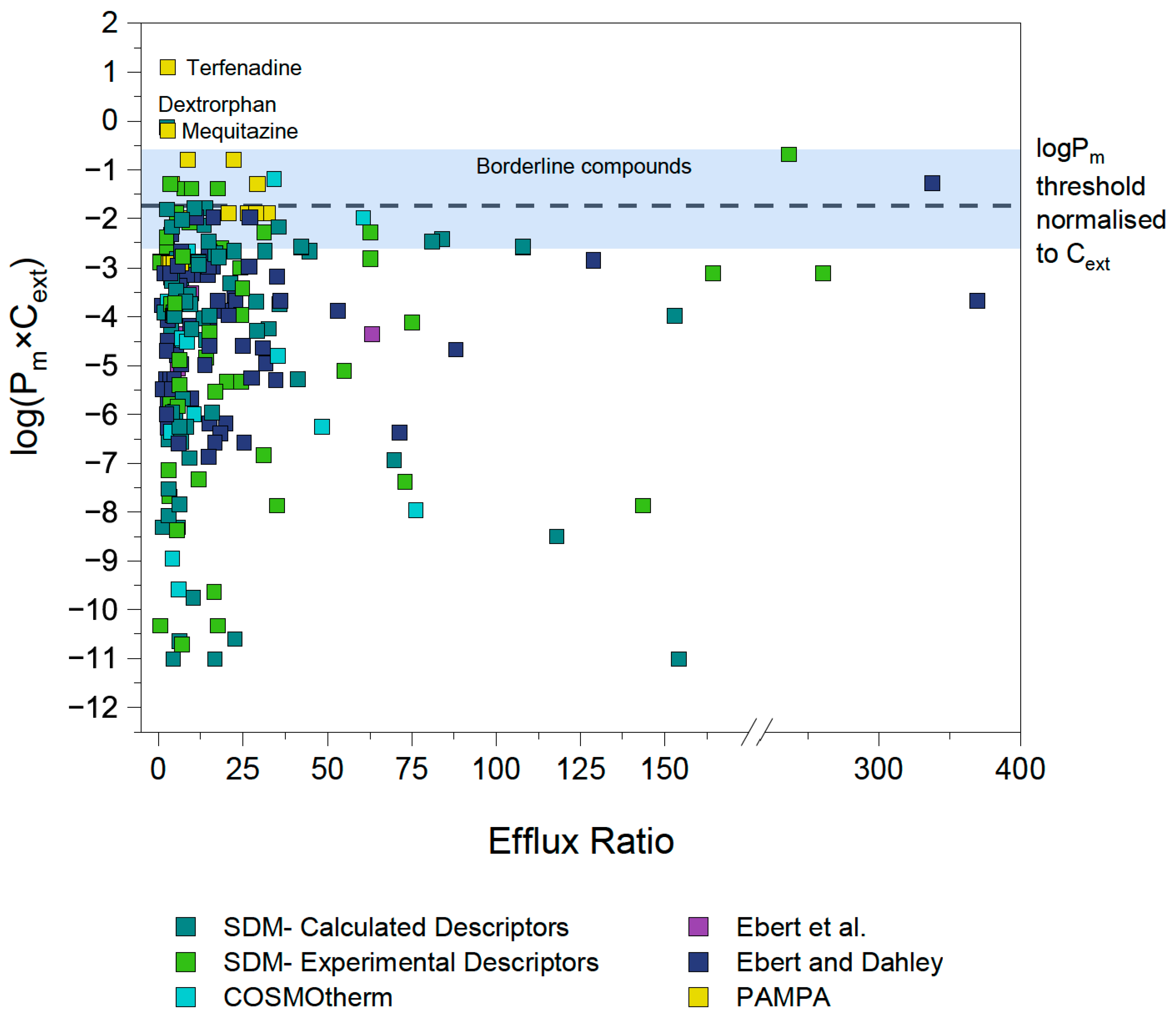 Kotze, S.; Goss, K.-U.; Ebert, A. Classifying Effluxable Versus Non-Effluxable Compounds Using a Permeability Threshold Based on Fundamental Energy Constraints. Pharmaceutics 2025, 17, 1455. https://doi.org/10.3390/pharmaceutics17111455