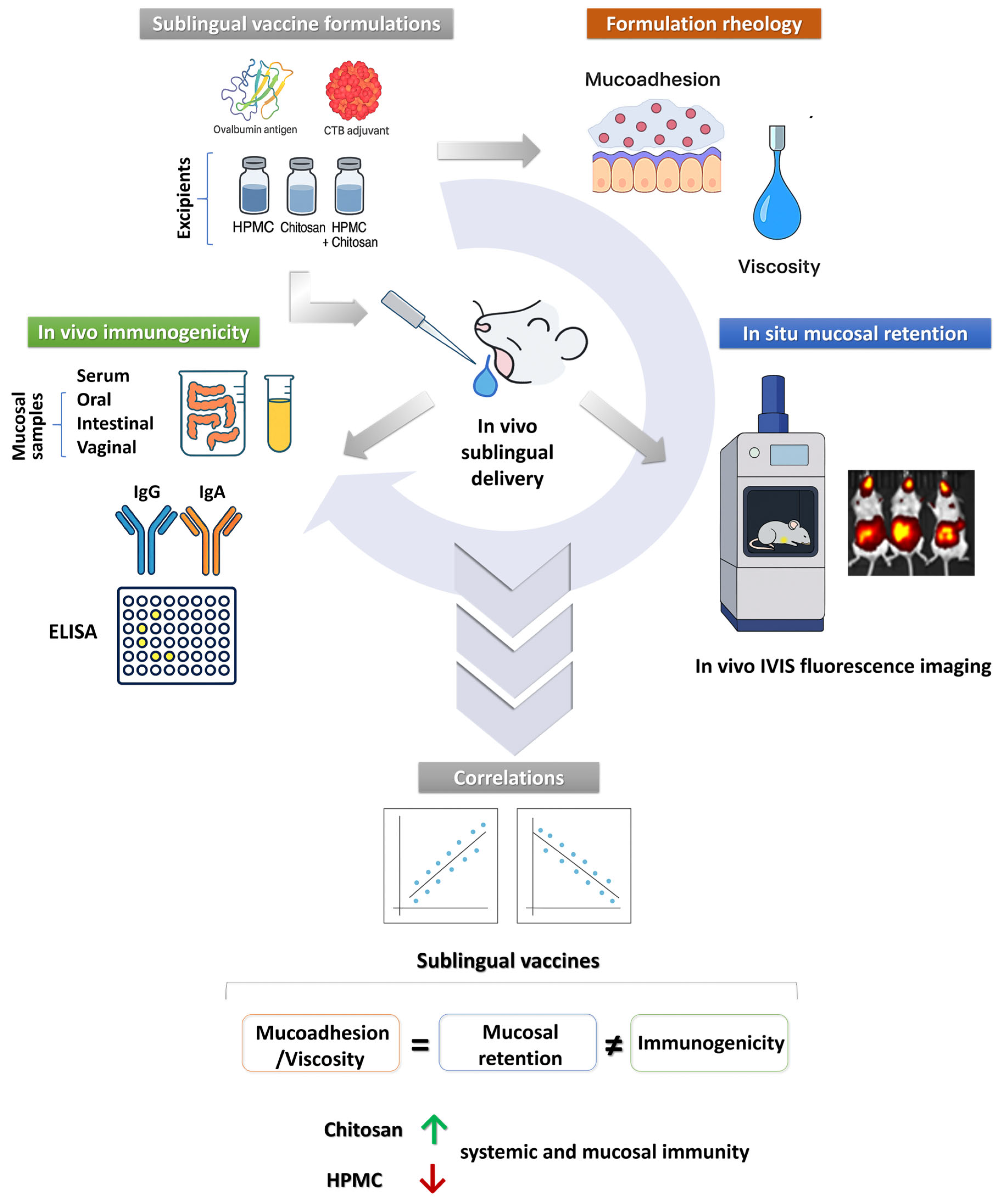 Correlations Between Rheology, In Situ Mucosal Retention and In Vivo Immunogenicity Reveal the Potential and Limitations of Mucoadhesive Excipients for Sublingual Vaccine Delivery