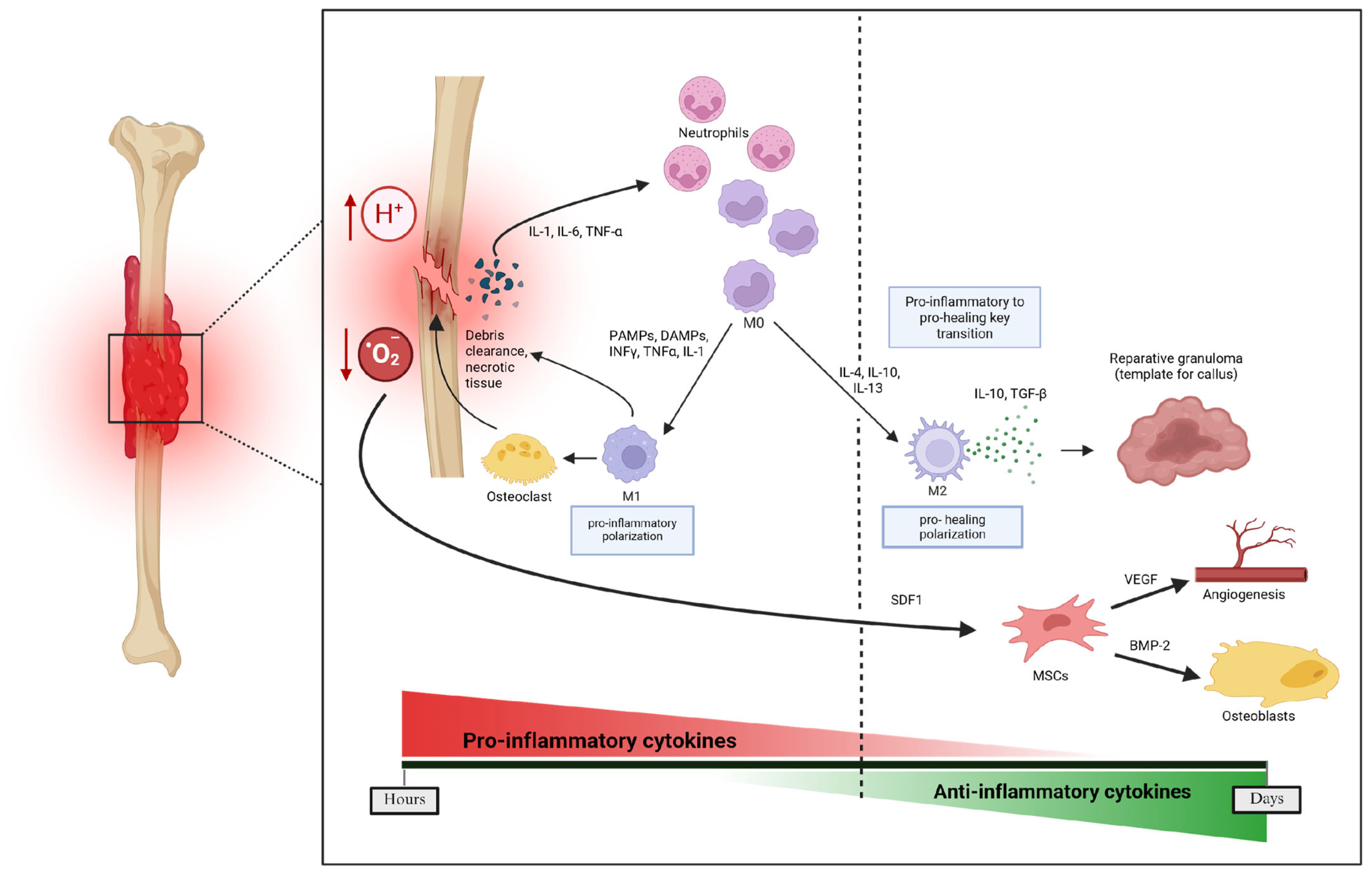 - Burgan, J.; Rahmati, M.; Lee, M.; Saiz, A.M. Innate Immune Response to Bone Fracture Healing. Bone 2025, 190, 117327. [Google Scholar] [CrossRef]