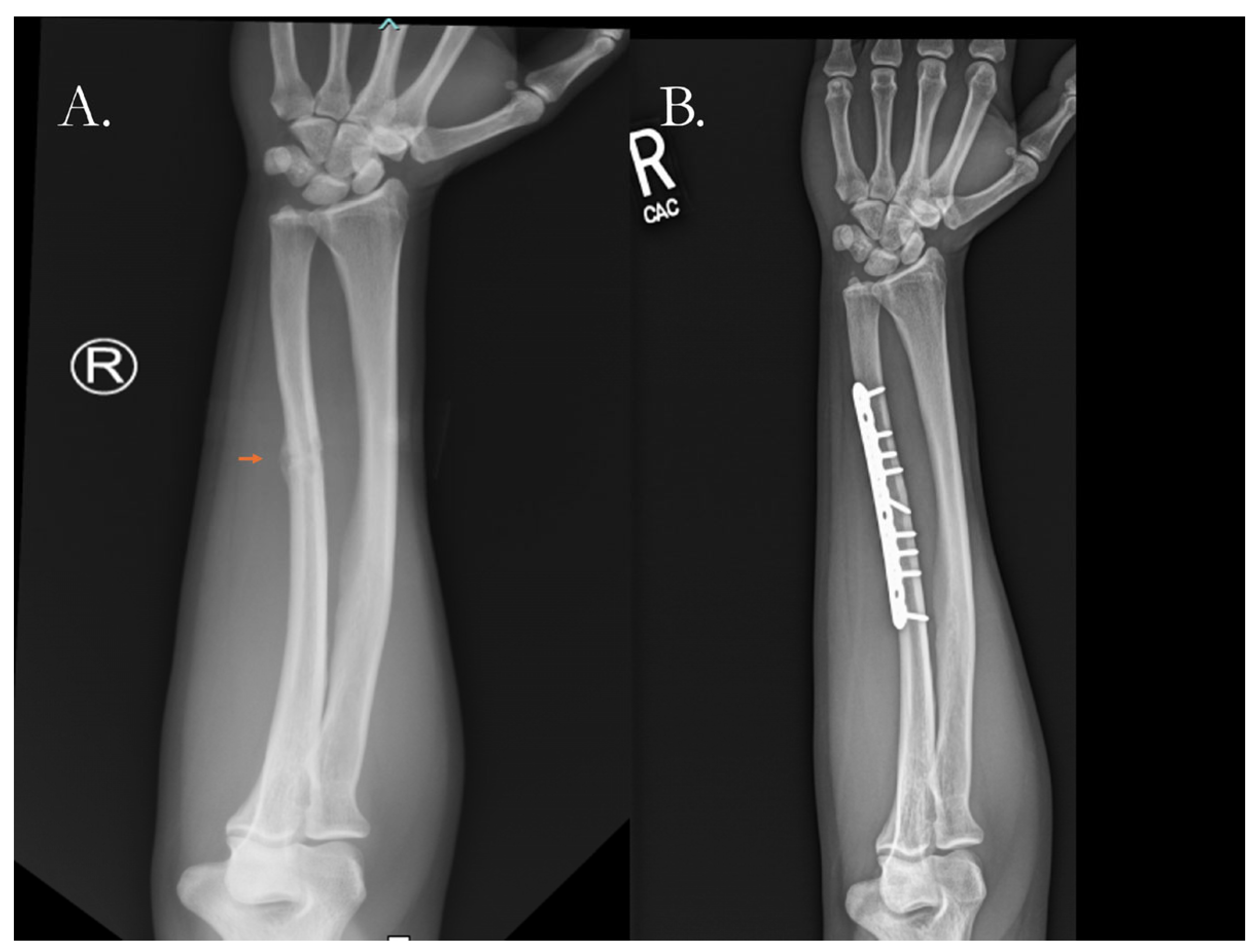 - Thomas, J.D.; Kehoe, J.L. Bone Nonunion. In StatPearls; StatPearls Publishing: Treasure Island, FL, USA, 2025. [Google Scholar]